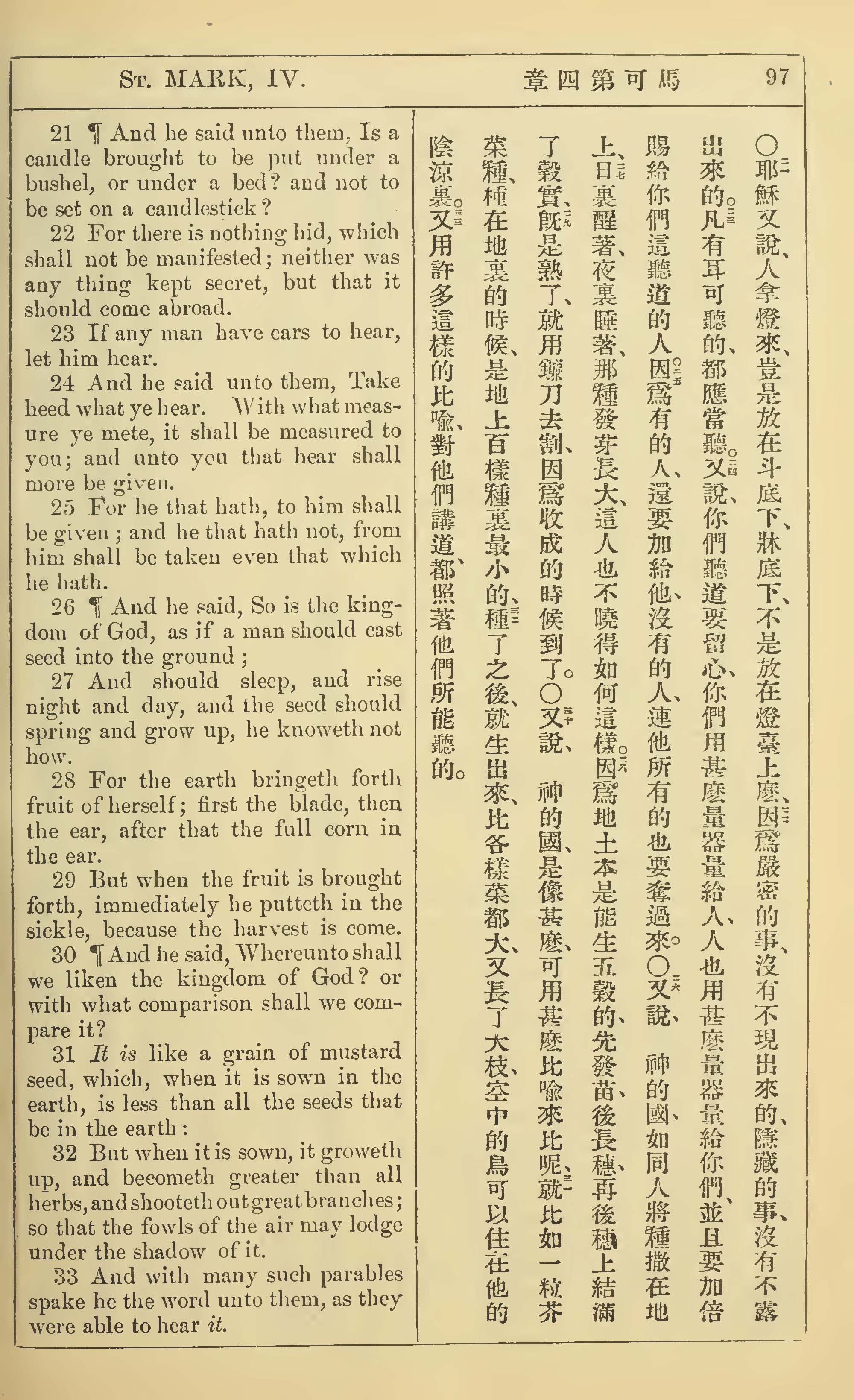 1902年新约全书(中英对照) 马可福音 4 章 21 节到 4 章 33 节