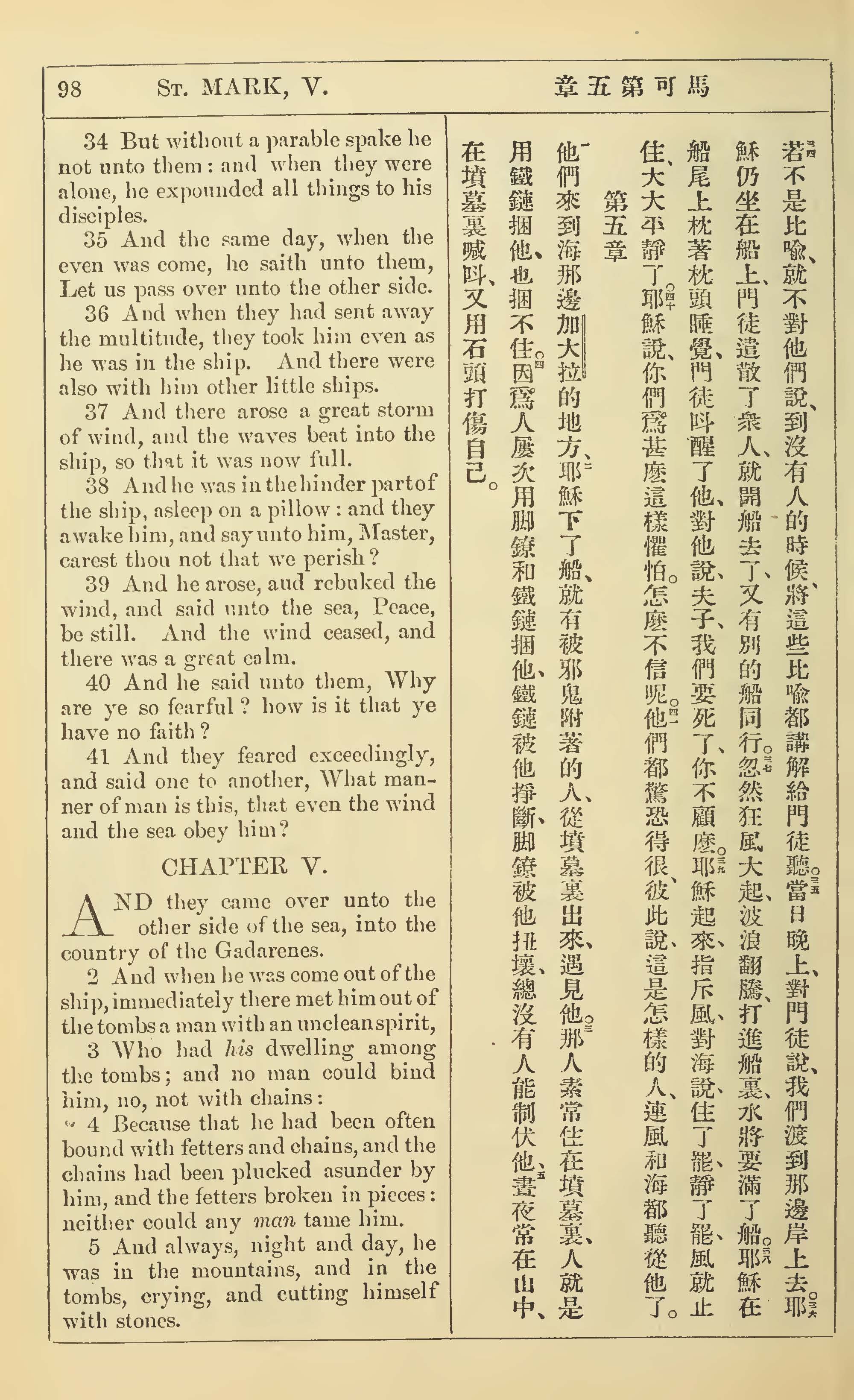 1902年新约全书(中英对照) 马可福音 4 章 34 节到 5 章 5 节