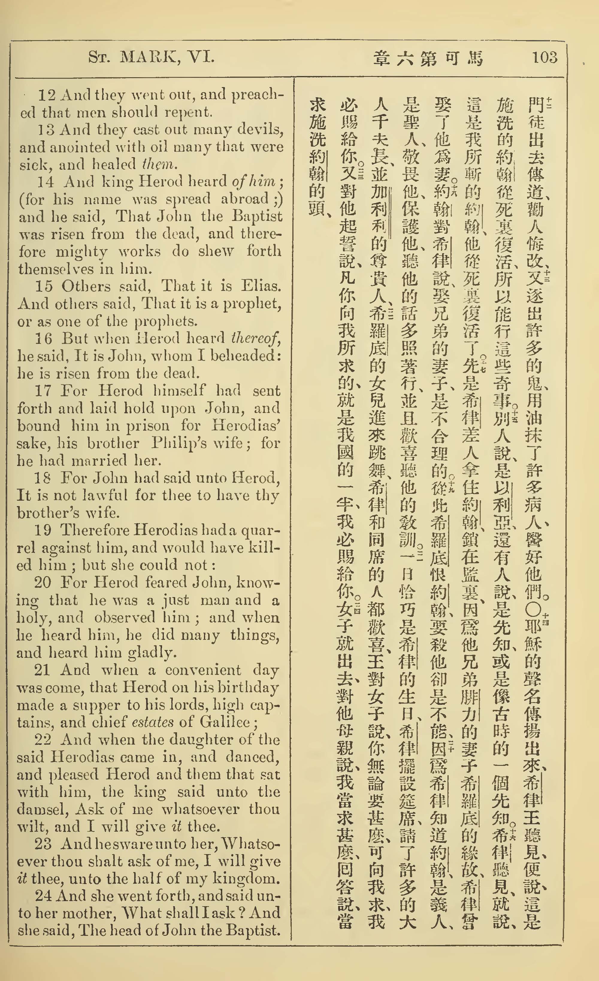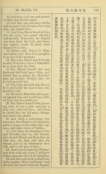 1902年新约全书(中英对照) 马可福音 6 章 12 节到 6 章 24 节