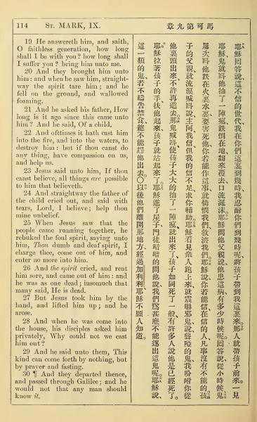 1902年新约全书(中英对照) 马可福音 9 章 19 节到 9 章 30 节
