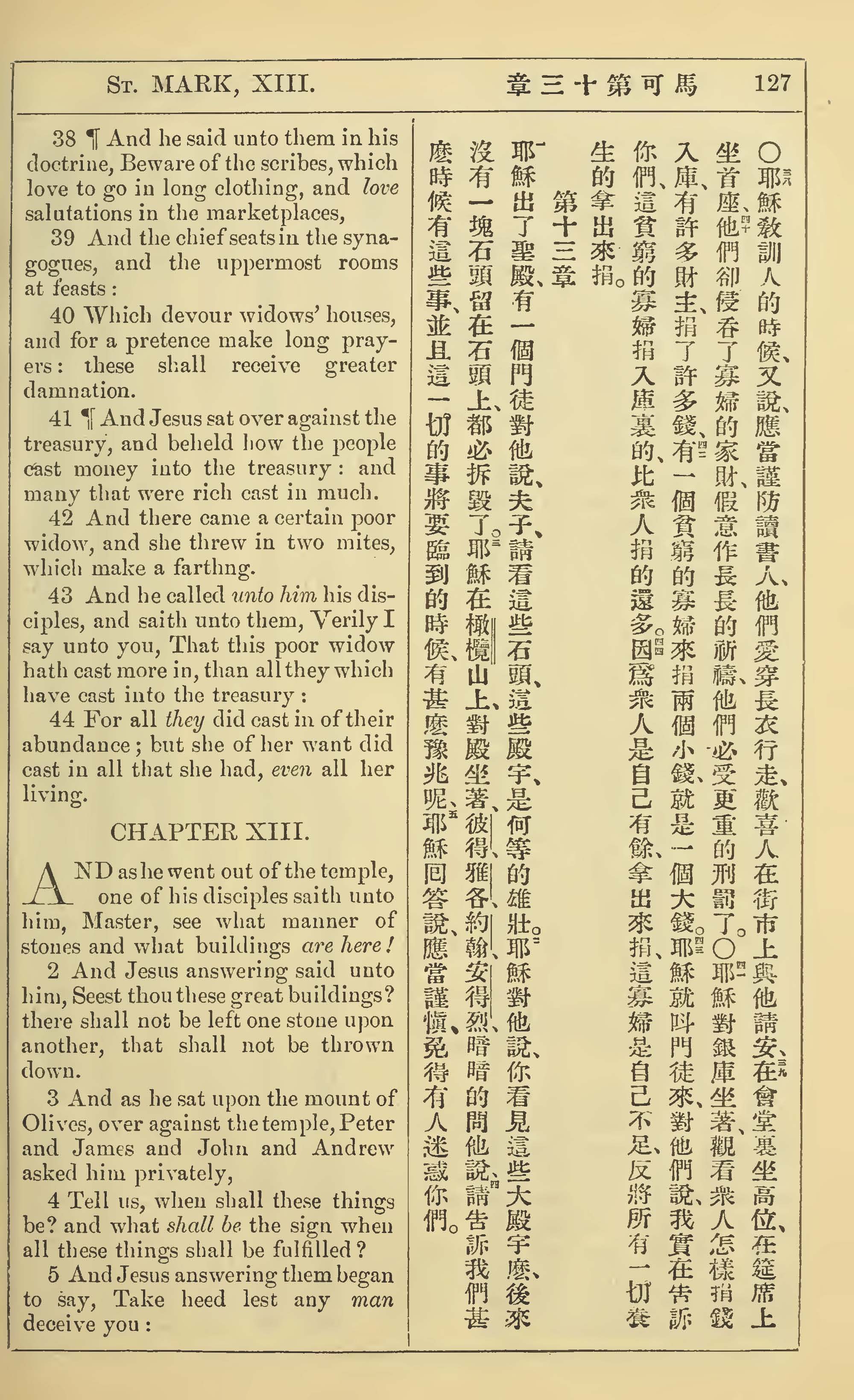 1902年新约全书(中英对照) 马可福音 12 章 38 节到 13 章 5 节