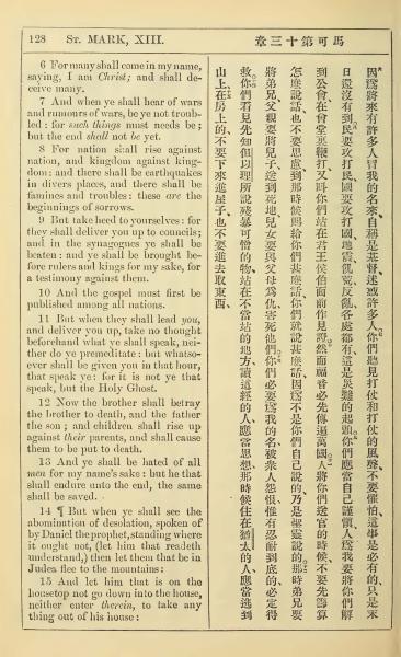1902年新约全书(中英对照) 马可福音 13 章 6 节到 13 章 15 节
