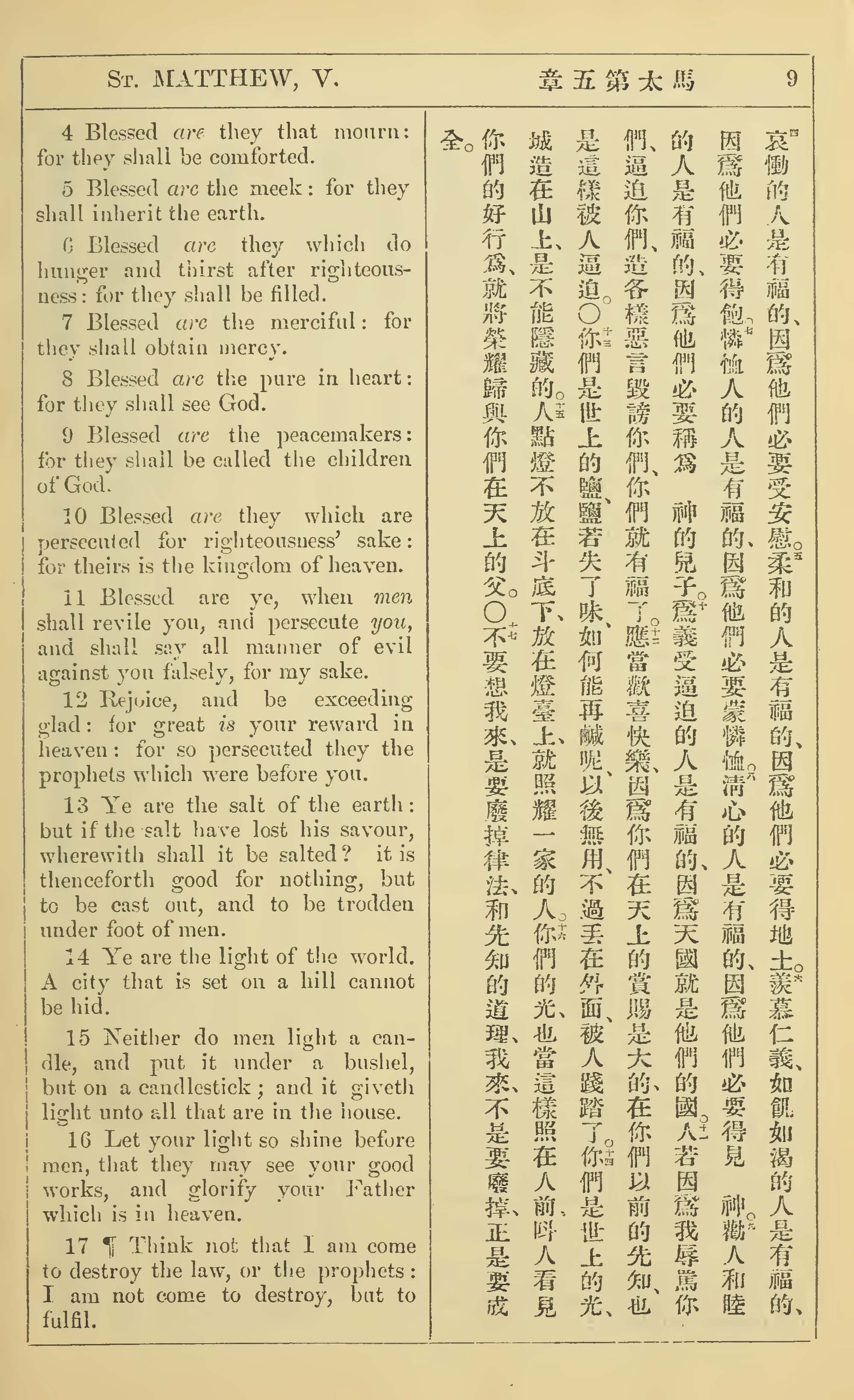 1902年新约全书(中英对照) 马太福音 5 章 4 节到 5 章 17 节