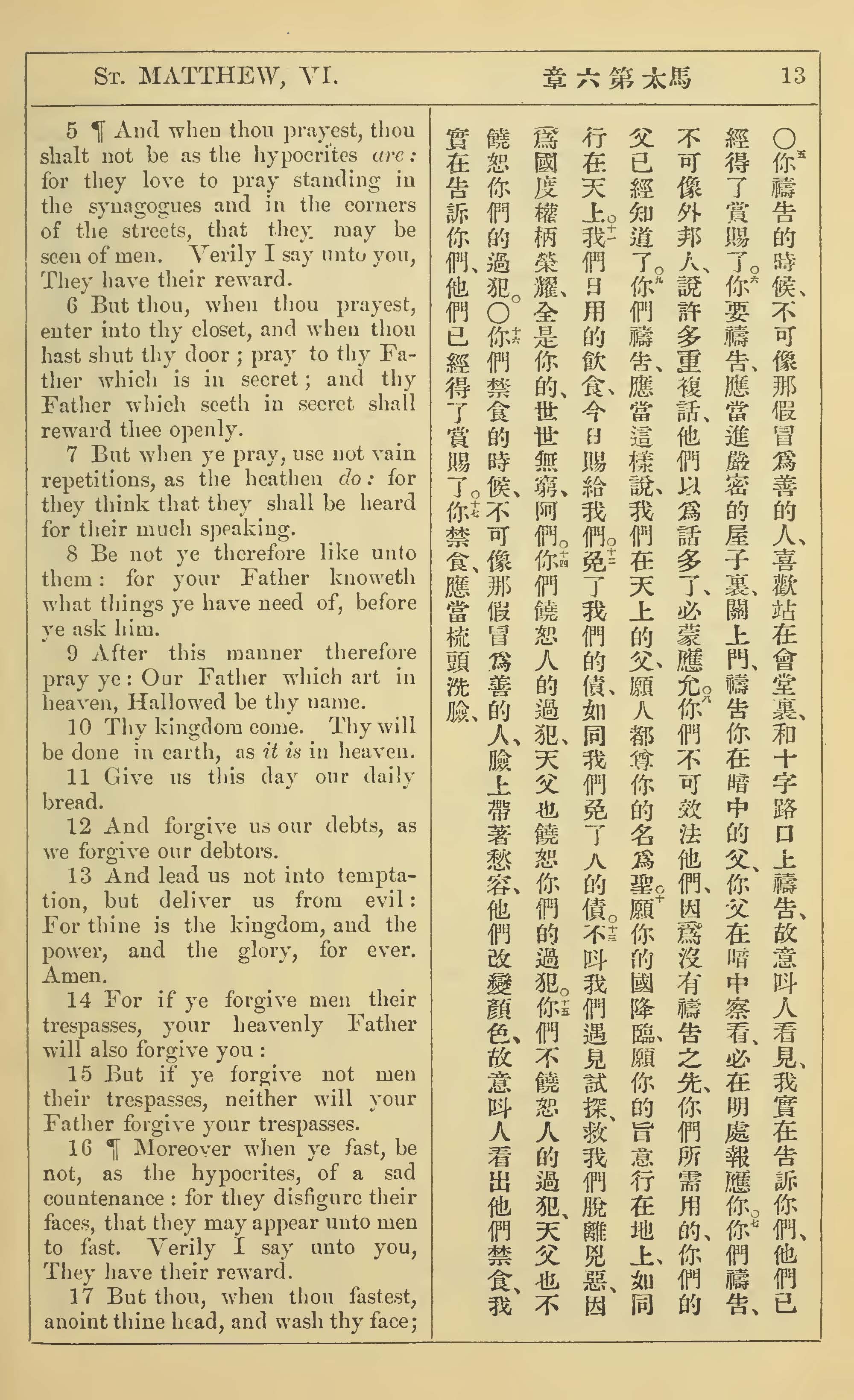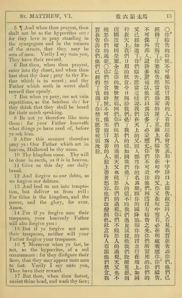 1902年新约全书(中英对照) 马太福音 6 章 5 节到 6 章 17 节