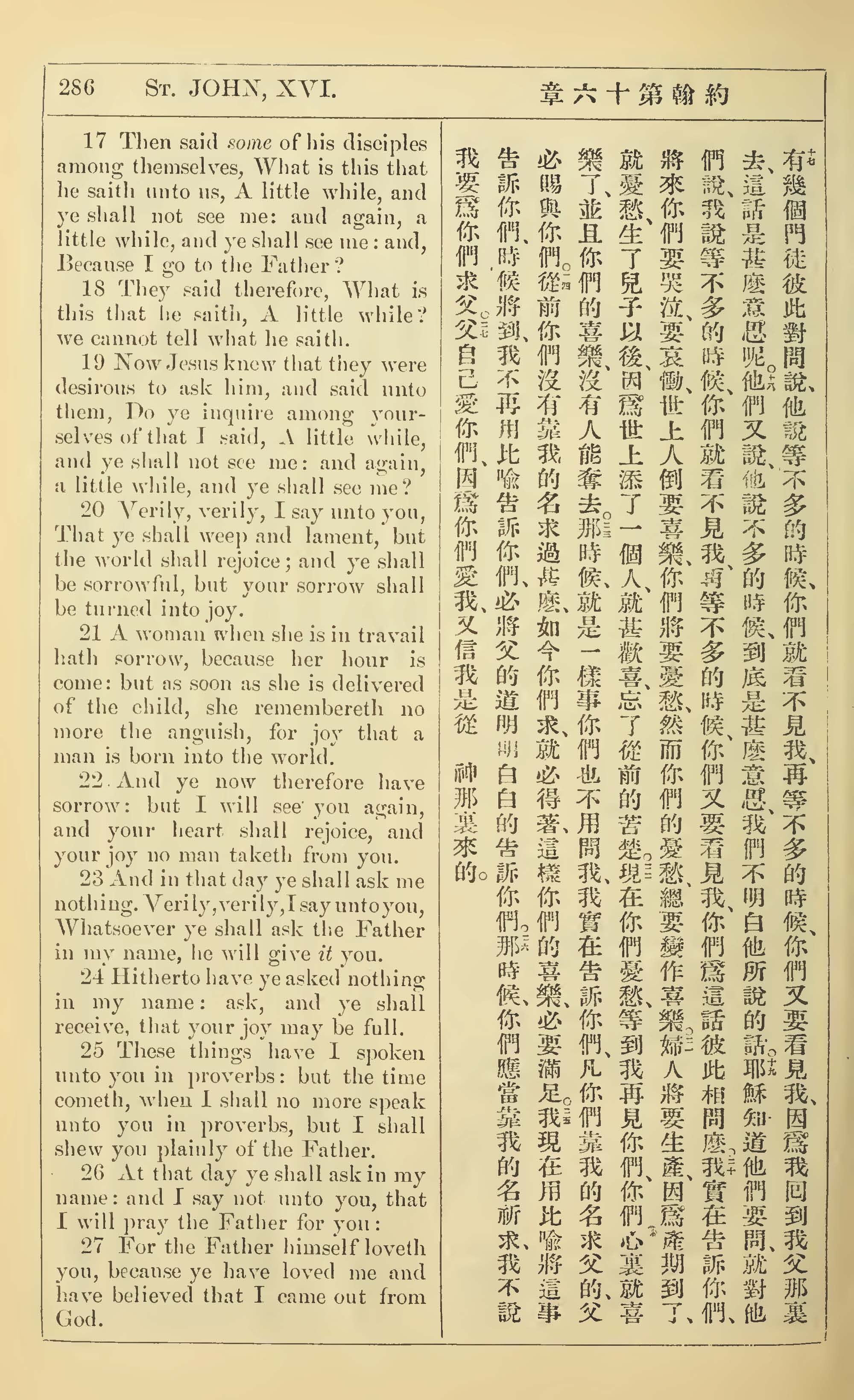 1902年新约全书(中英对照) 约翰福音 16 章 17 节到 16 章 27 节