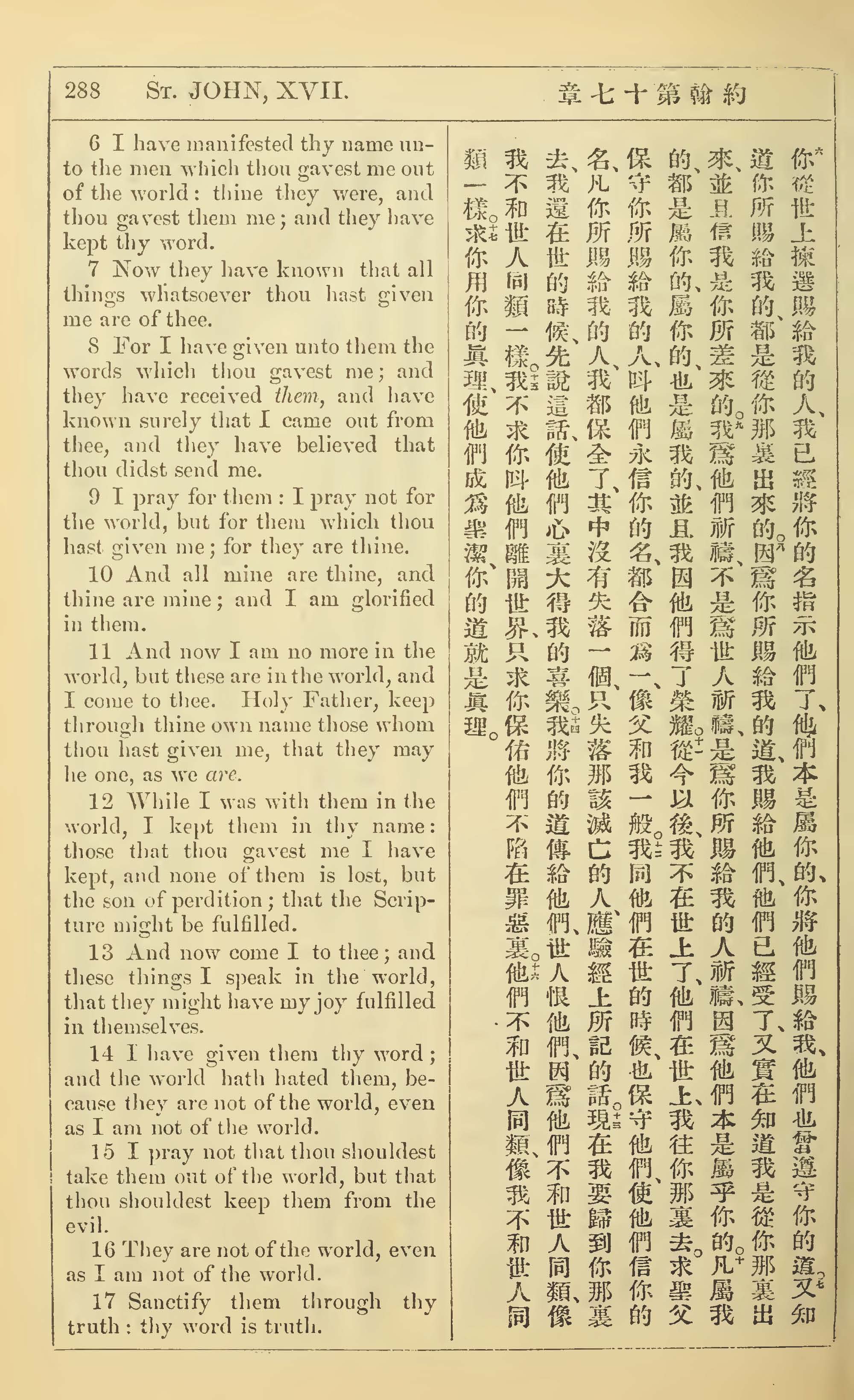 1902年新约全书(中英对照) 约翰福音 17 章 6 节到 17 章 17 节