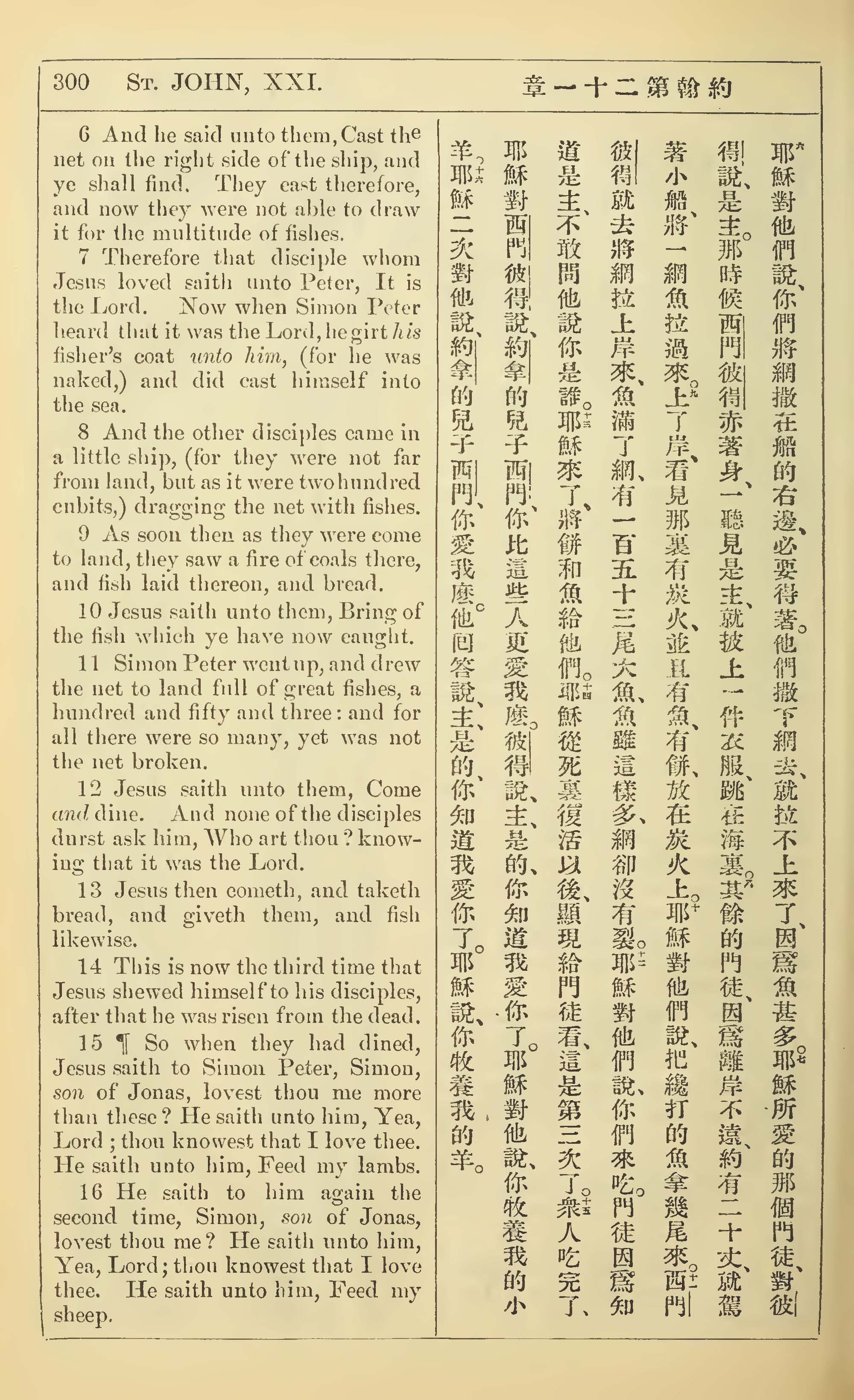 1902年新约全书(中英对照) 约翰福音 21 章 6 节到 21 章 16 节