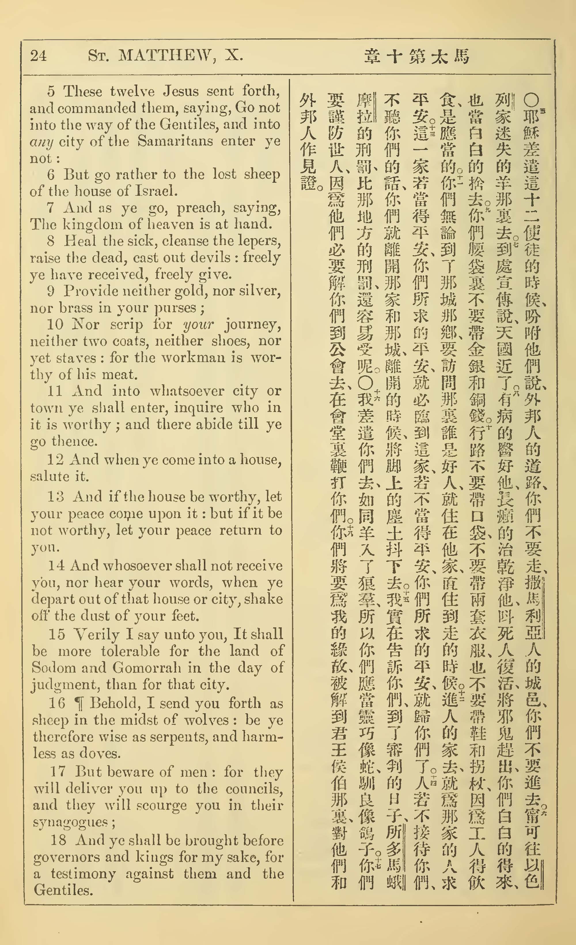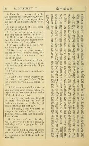 1902年新约全书(中英对照) 马太福音 10 章 5 节到 10 章 18 节