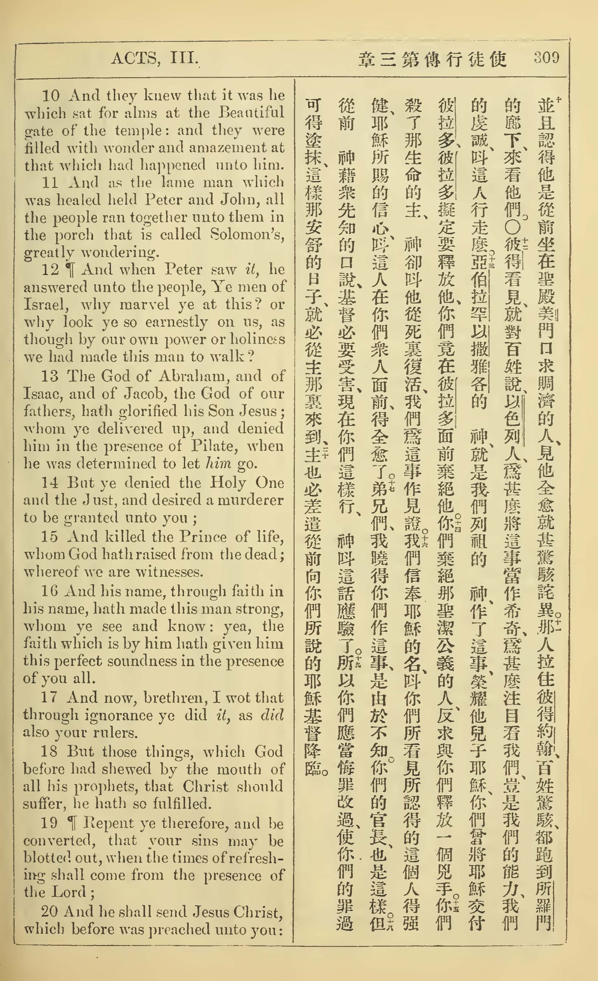 1902年新约全书(中英对照) 使徒行传 3 章 10 节到 3 章 20 节