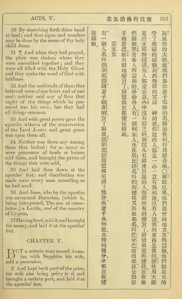 1902年新约全书(中英对照) 使徒行传 4 章 30 节到 5 章 2 节