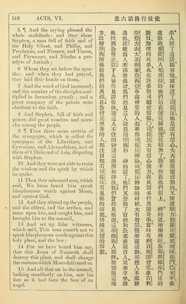 1902年新约全书(中英对照) 使徒行传 6 章 5 节到 6 章 15 节
