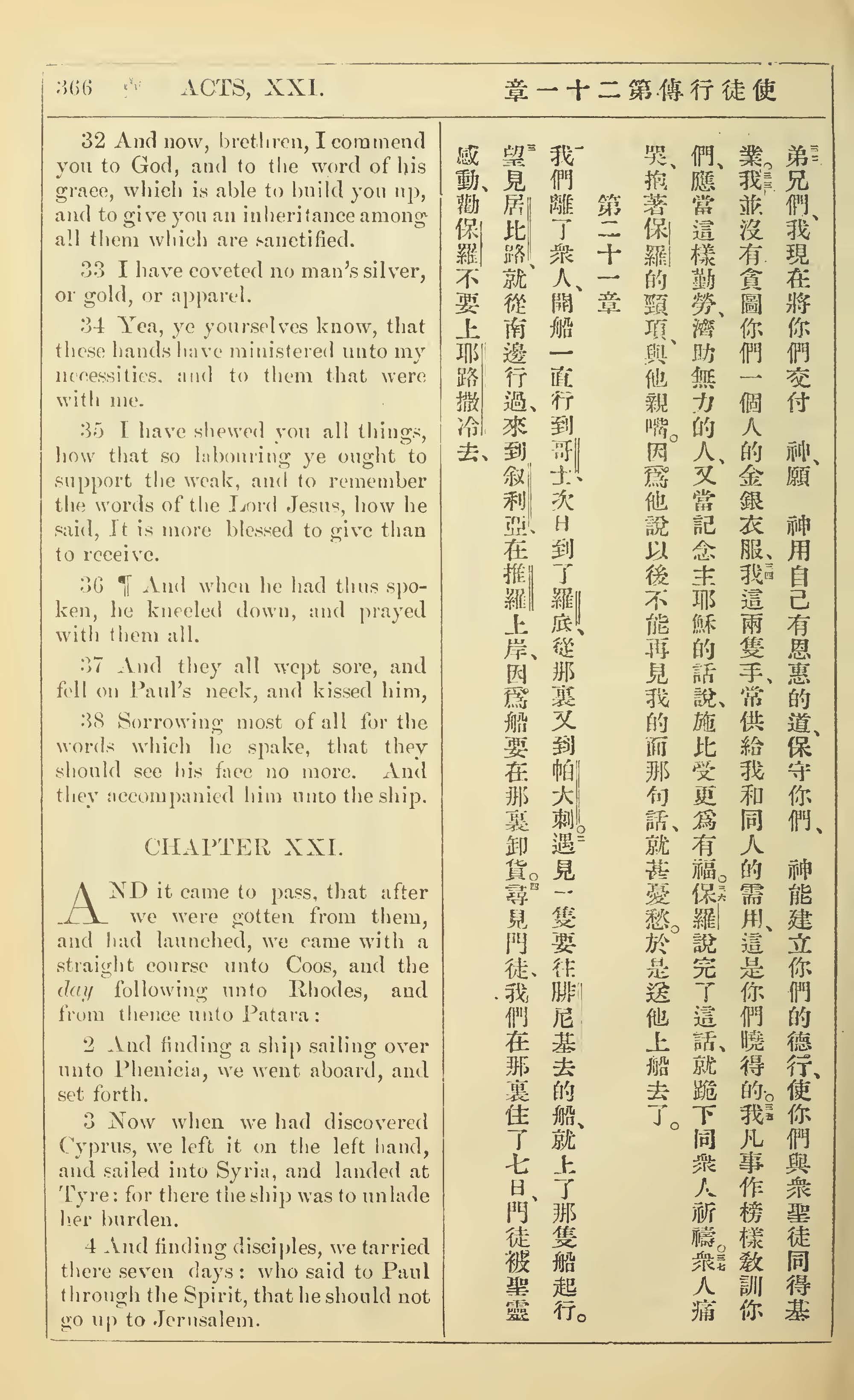 1902年新约全书(中英对照) 使徒行传 20 章 32 节到 21 章 4 节