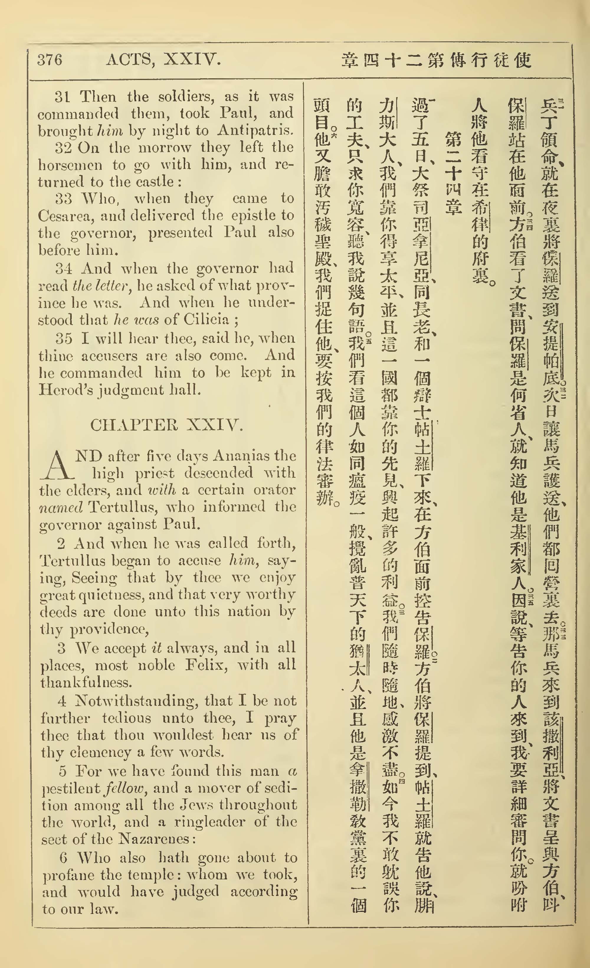 1902年新约全书(中英对照) 使徒行传 23 章 31 节到 24 章 6 节