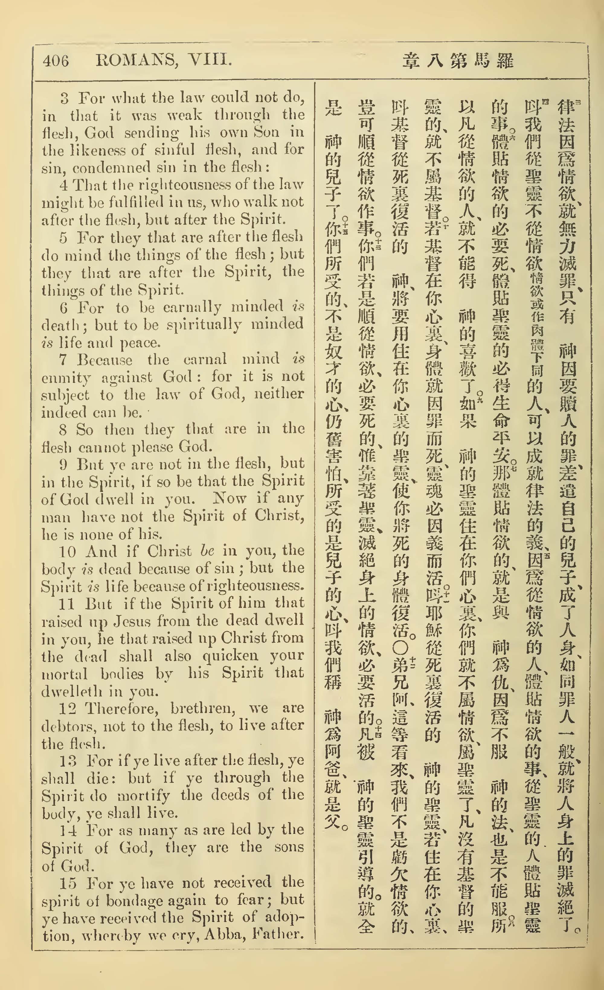 1902年新约全书(中英对照) 罗马书 8 章 3 节到 8 章 15 节