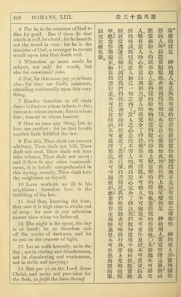 1902年新约全书(中英对照) 罗马书 13 章 4 节到 13 章 14 节
