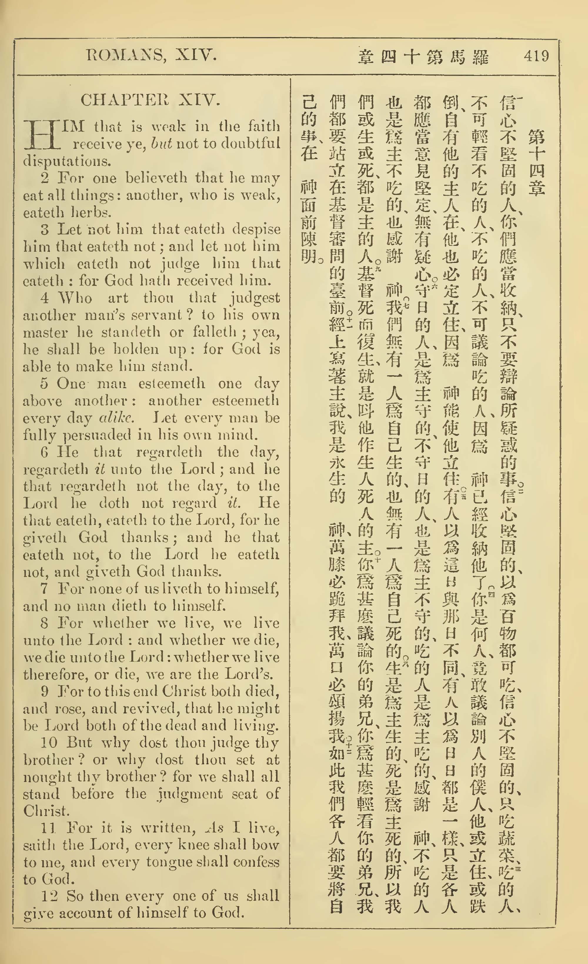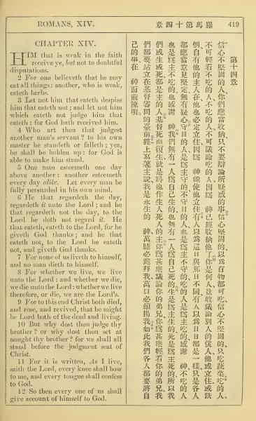 1902年新约全书(中英对照) 罗马书 14 章 1 节到 14 章 12 节