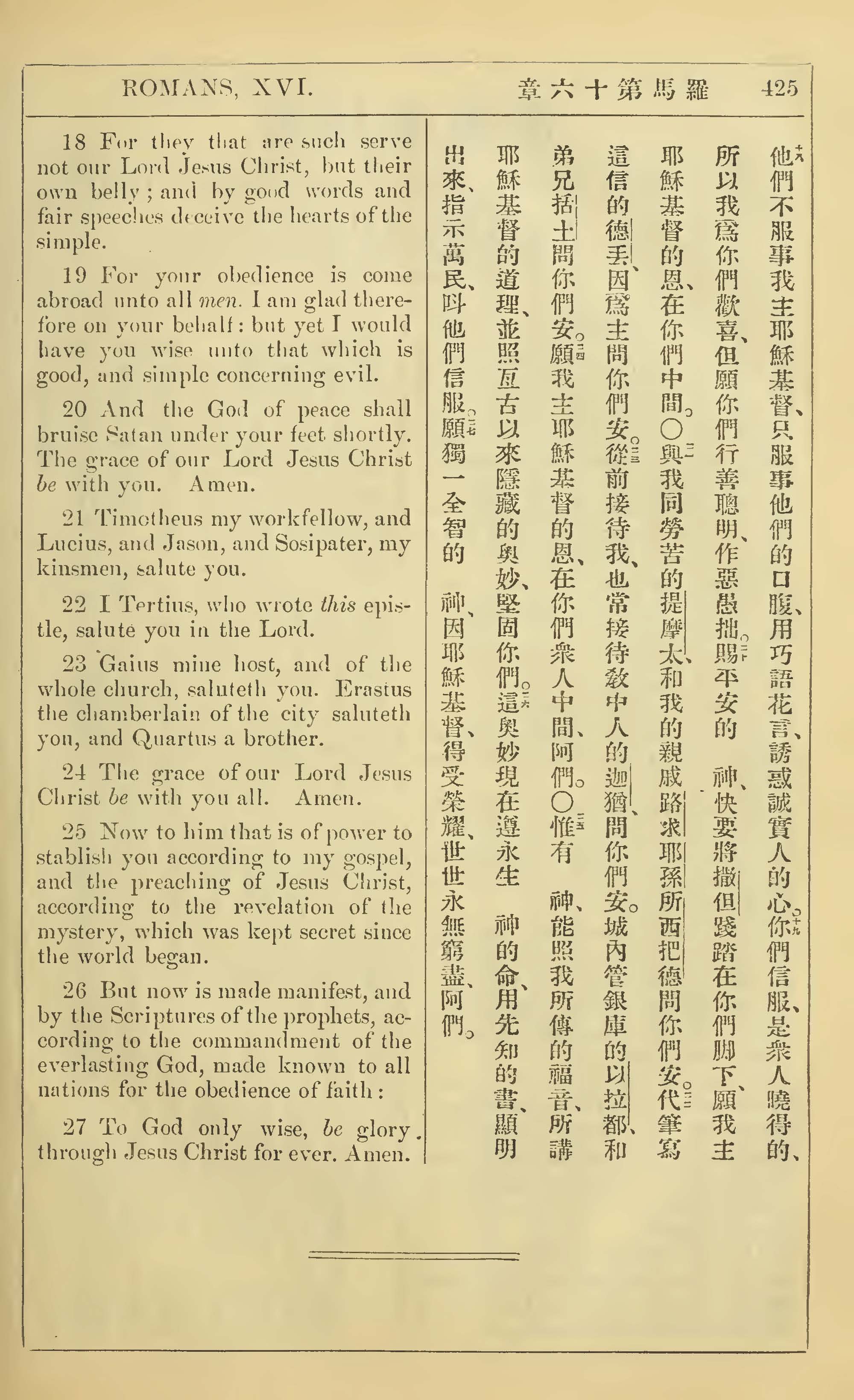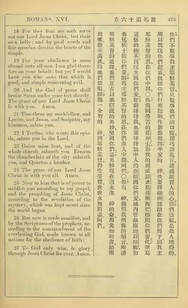 1902年新约全书(中英对照) 罗马书 16 章 18 节到 16 章 27 节