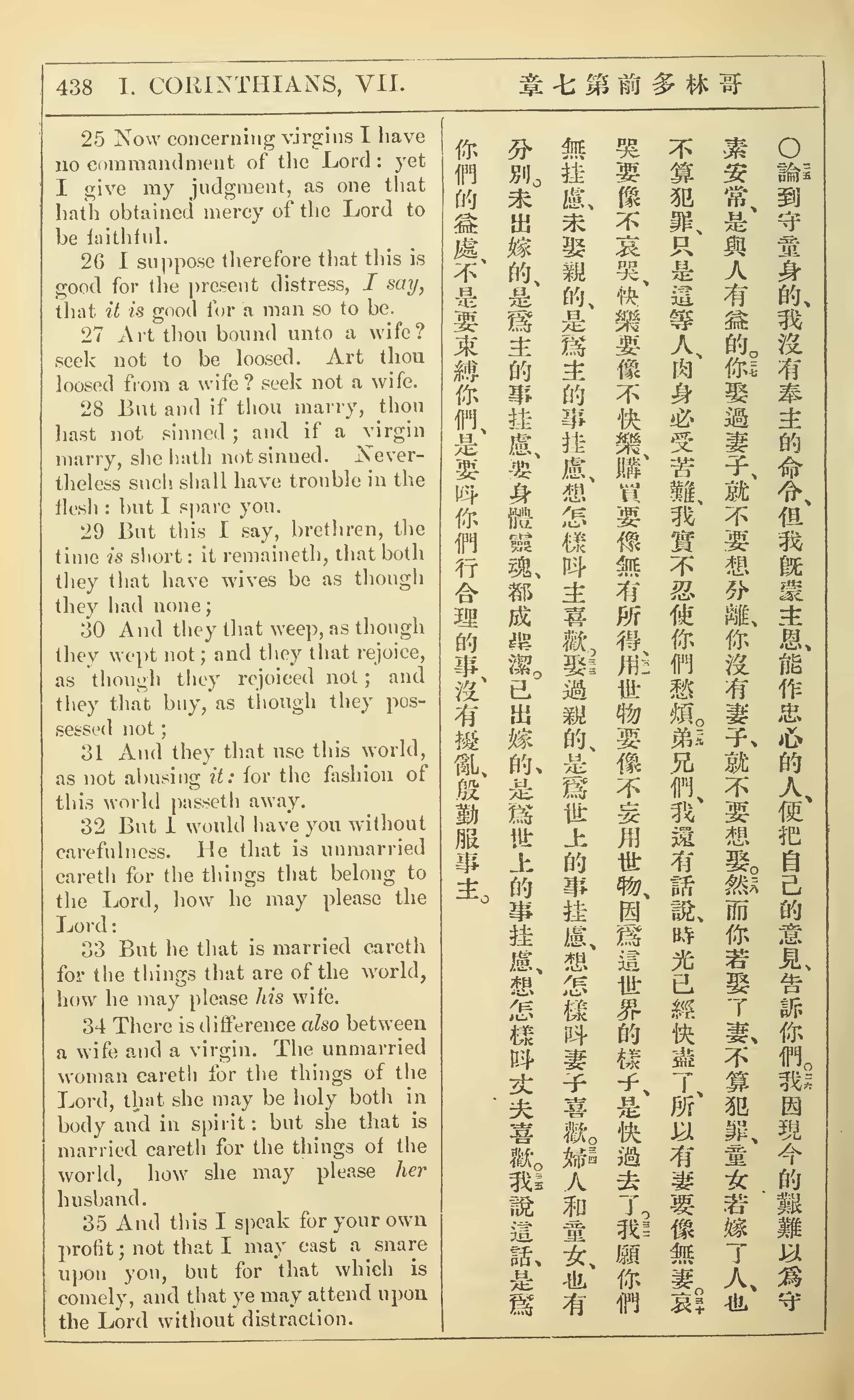 1902年新约全书(中英对照) 哥林多前书 7 章 25 节到 7 章 35 节