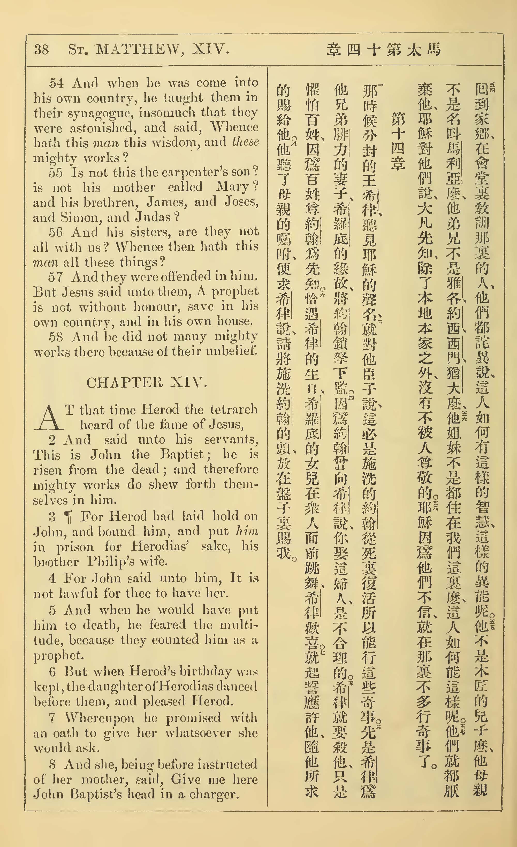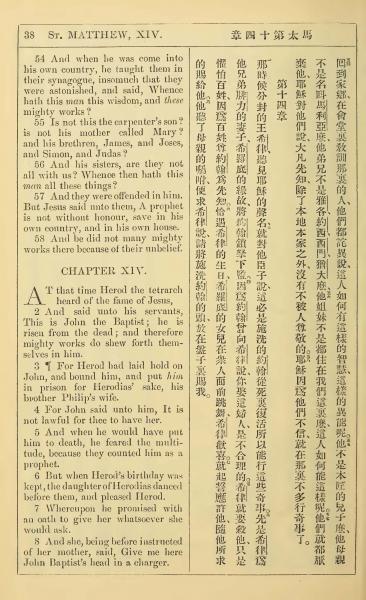 1902年新约全书(中英对照) 马太福音 13 章 54 节到 14 章 8 节