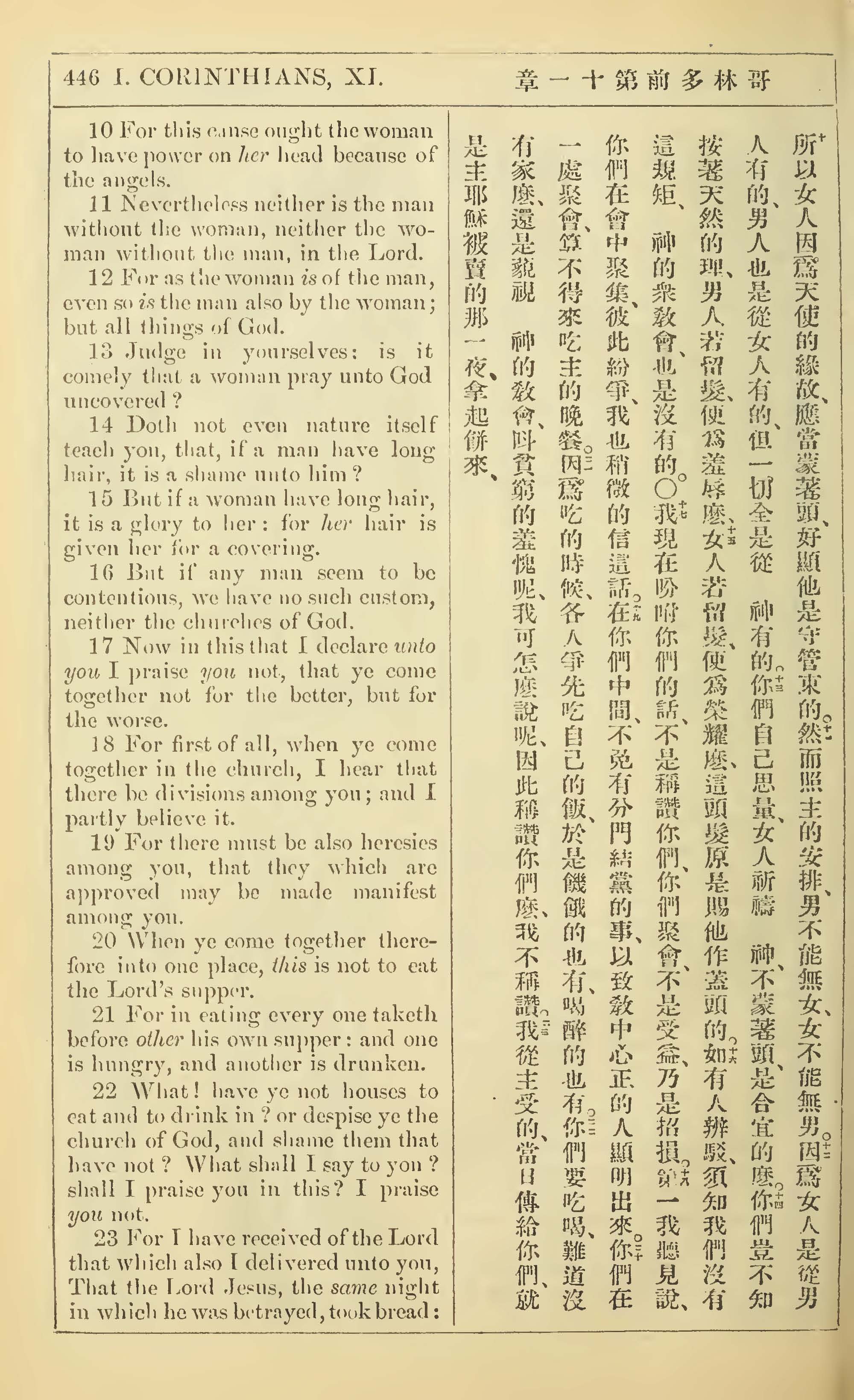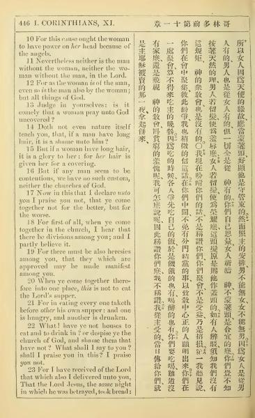 1902年新约全书(中英对照) 哥林多前书 11 章 10 节到 11 章 23 节