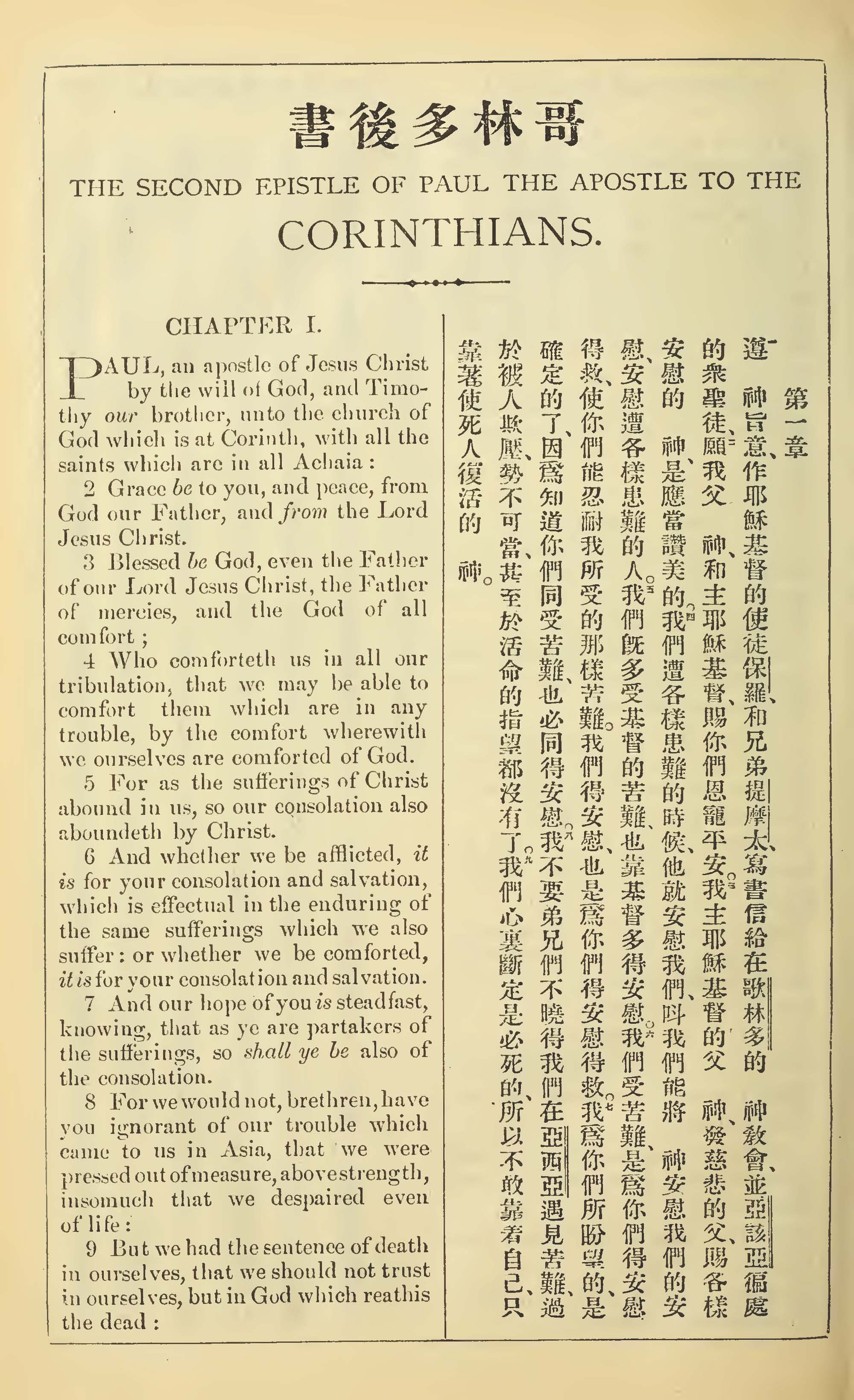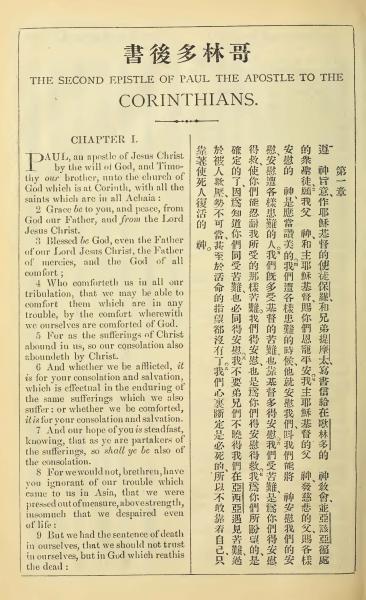 1902年新约全书(中英对照) 哥林多后书 1 章 1 节到 1 章 9 节