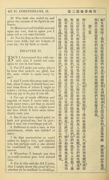 1902年新约全书(中英对照) 哥林多后书 1 章 22 节到 2 章 9 节