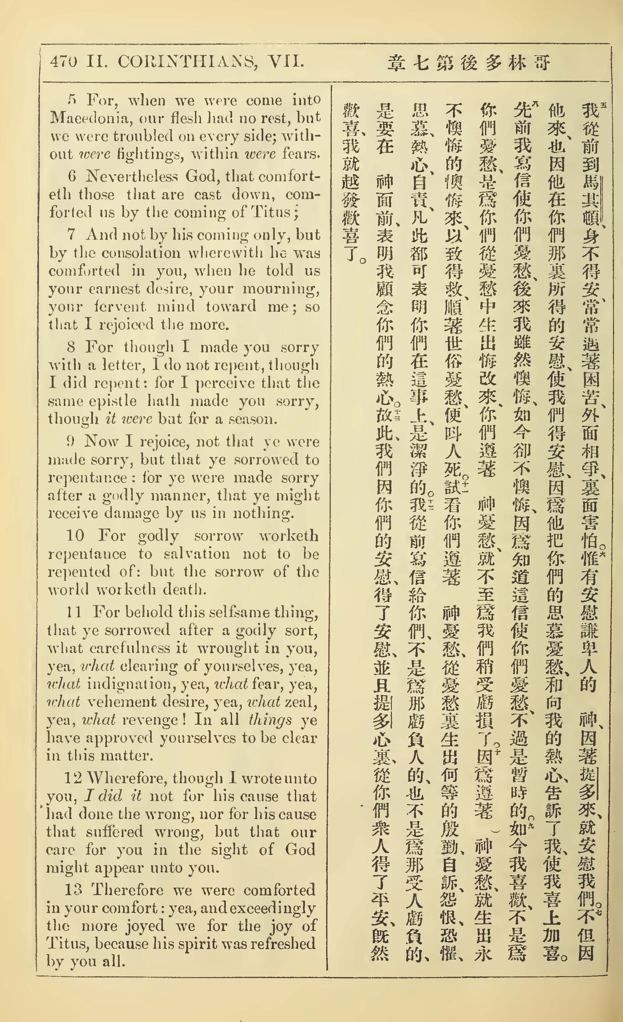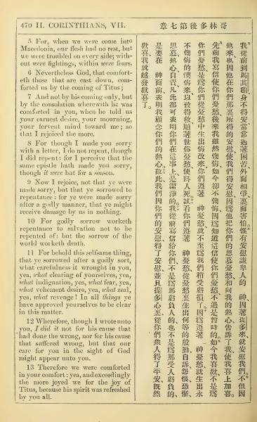 1902年新约全书(中英对照) 哥林多后书 7 章 5 节到 7 章 13 节
