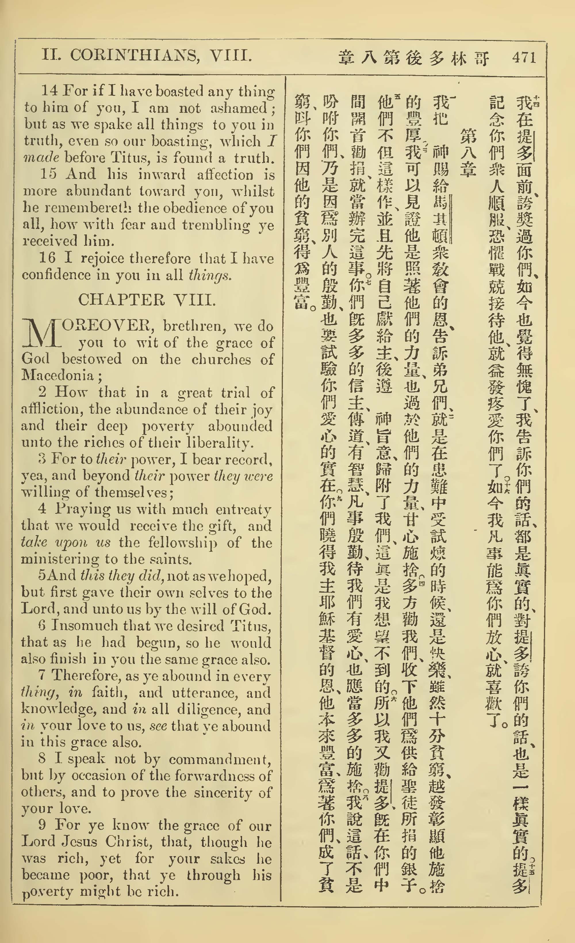 1902年新约全书(中英对照) 哥林多后书 7 章 14 节到 8 章 9 节