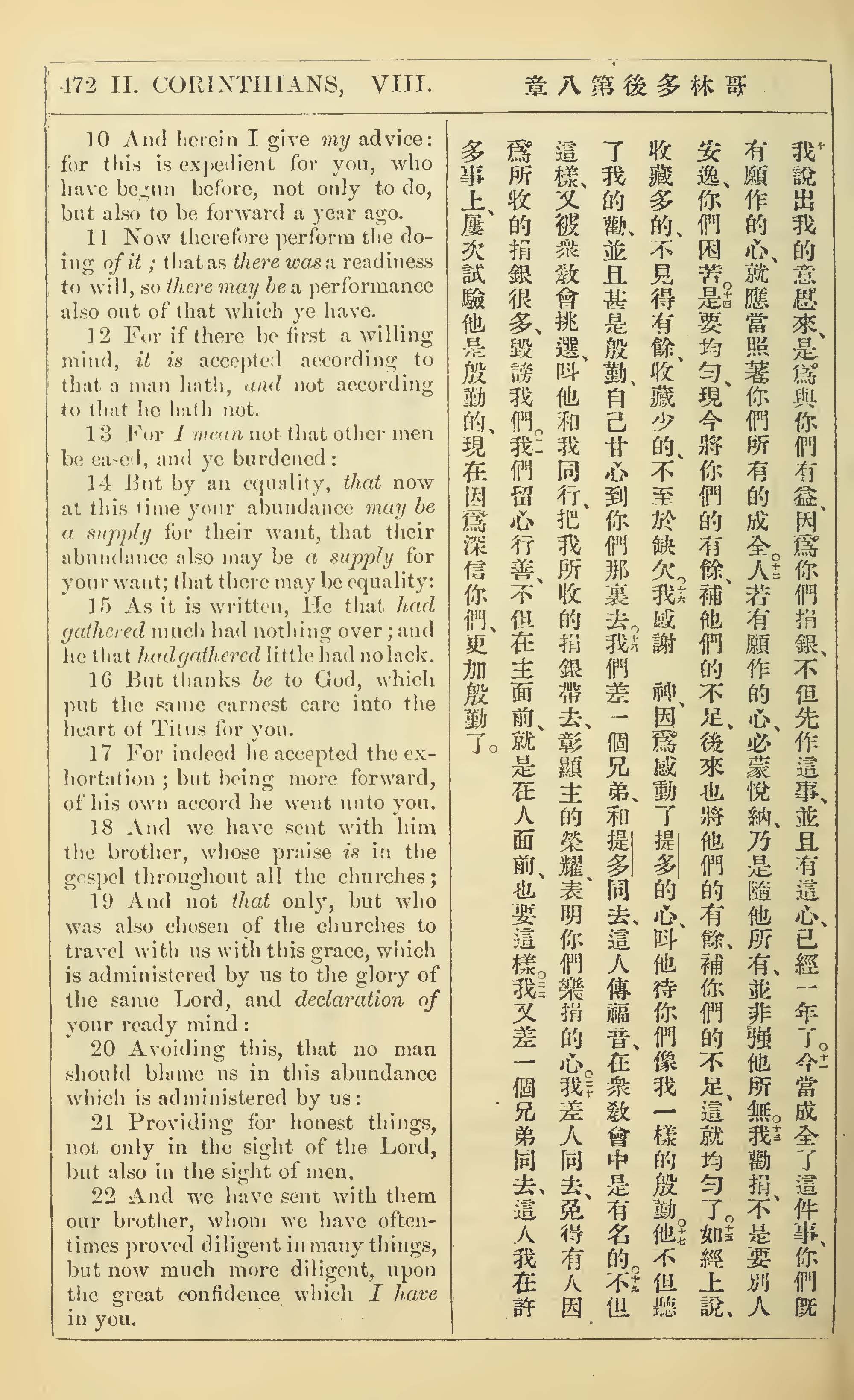 1902年新约全书(中英对照) 哥林多后书 8 章 10 节到 8 章 22 节