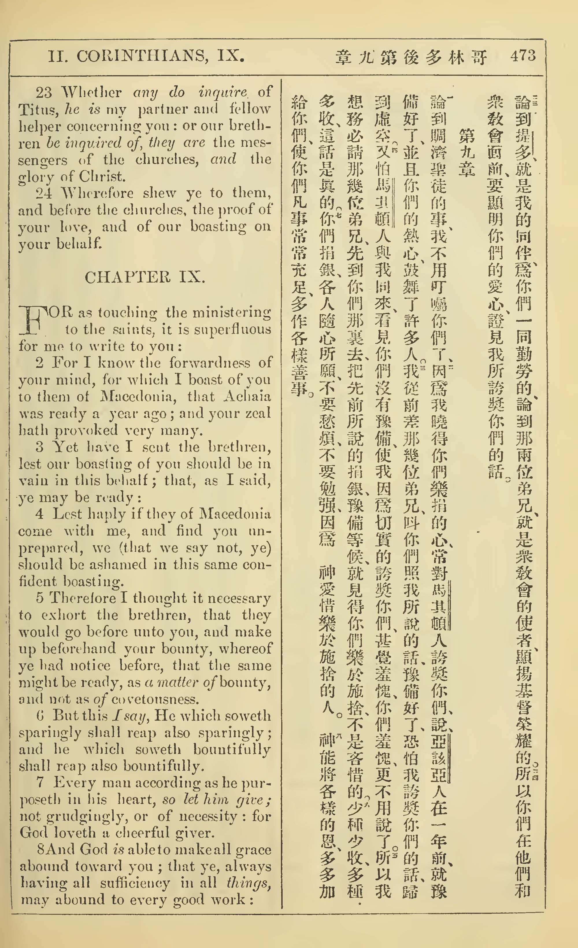 1902年新约全书(中英对照) 哥林多后书 8 章 23 节到 9 章 8 节