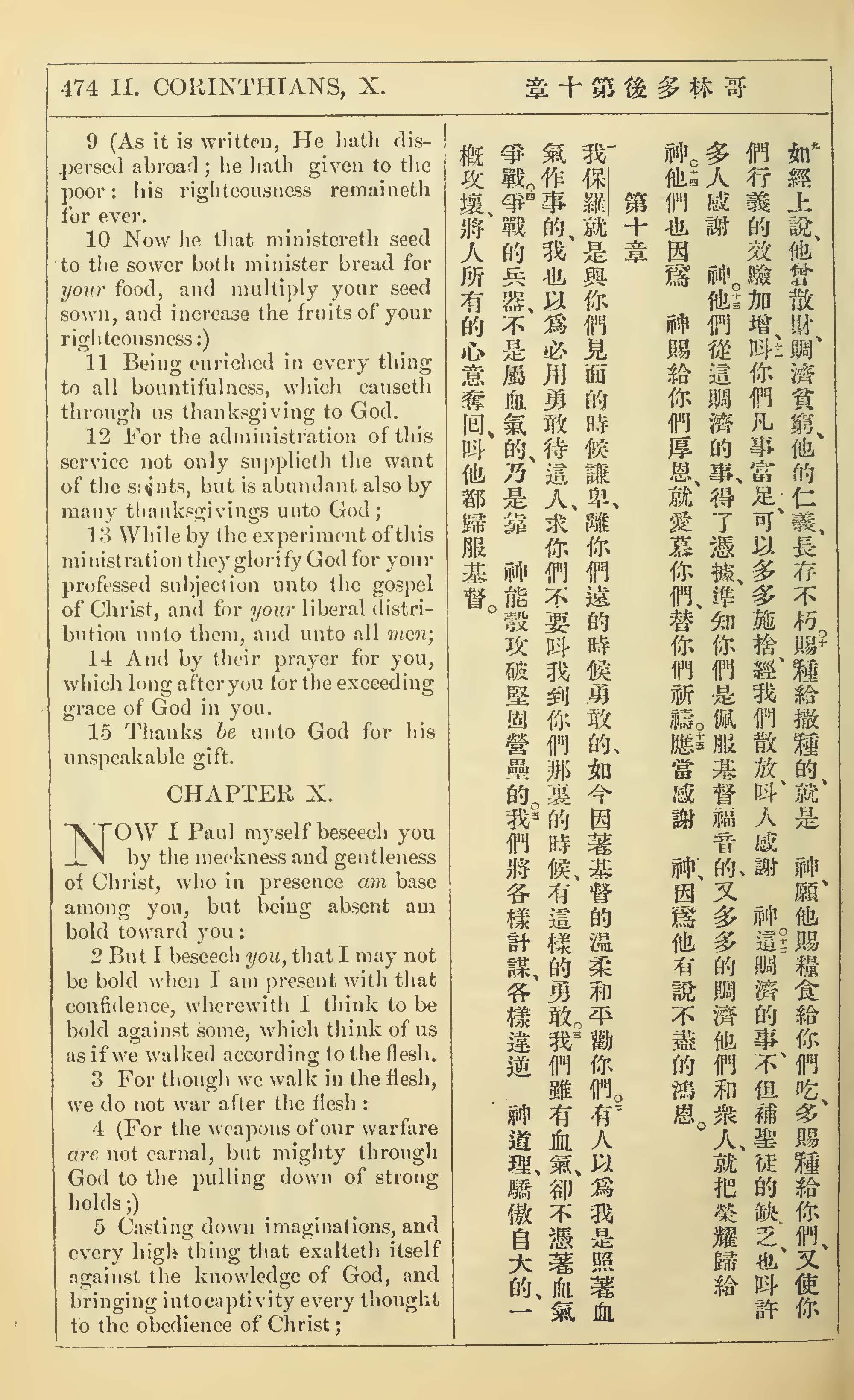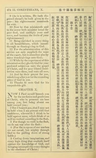 1902年新约全书(中英对照) 哥林多后书 9 章 9 节到 10 章 5 节