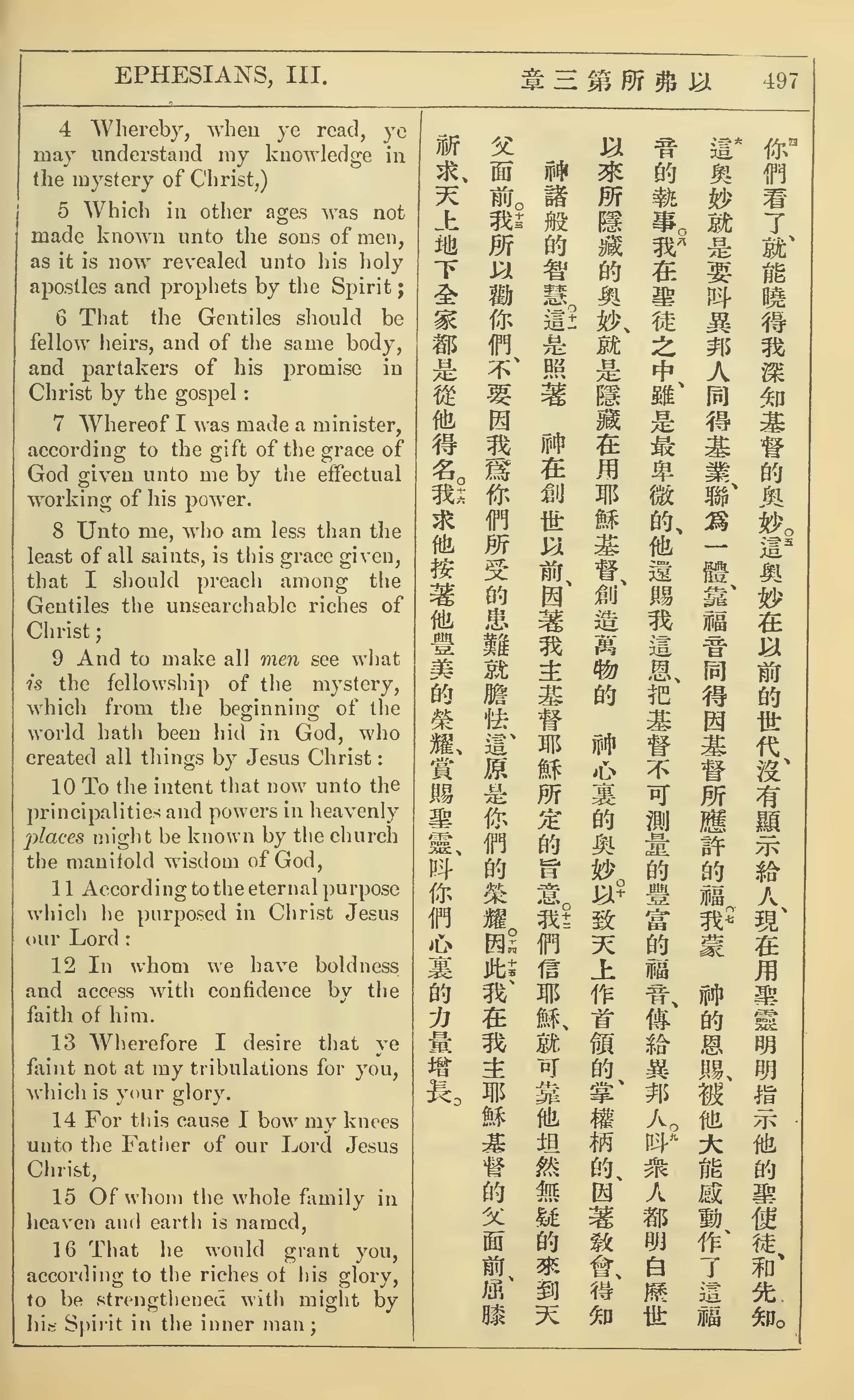 1902年新约全书(中英对照) 以弗所书 3 章 4 节到 3 章 16 节