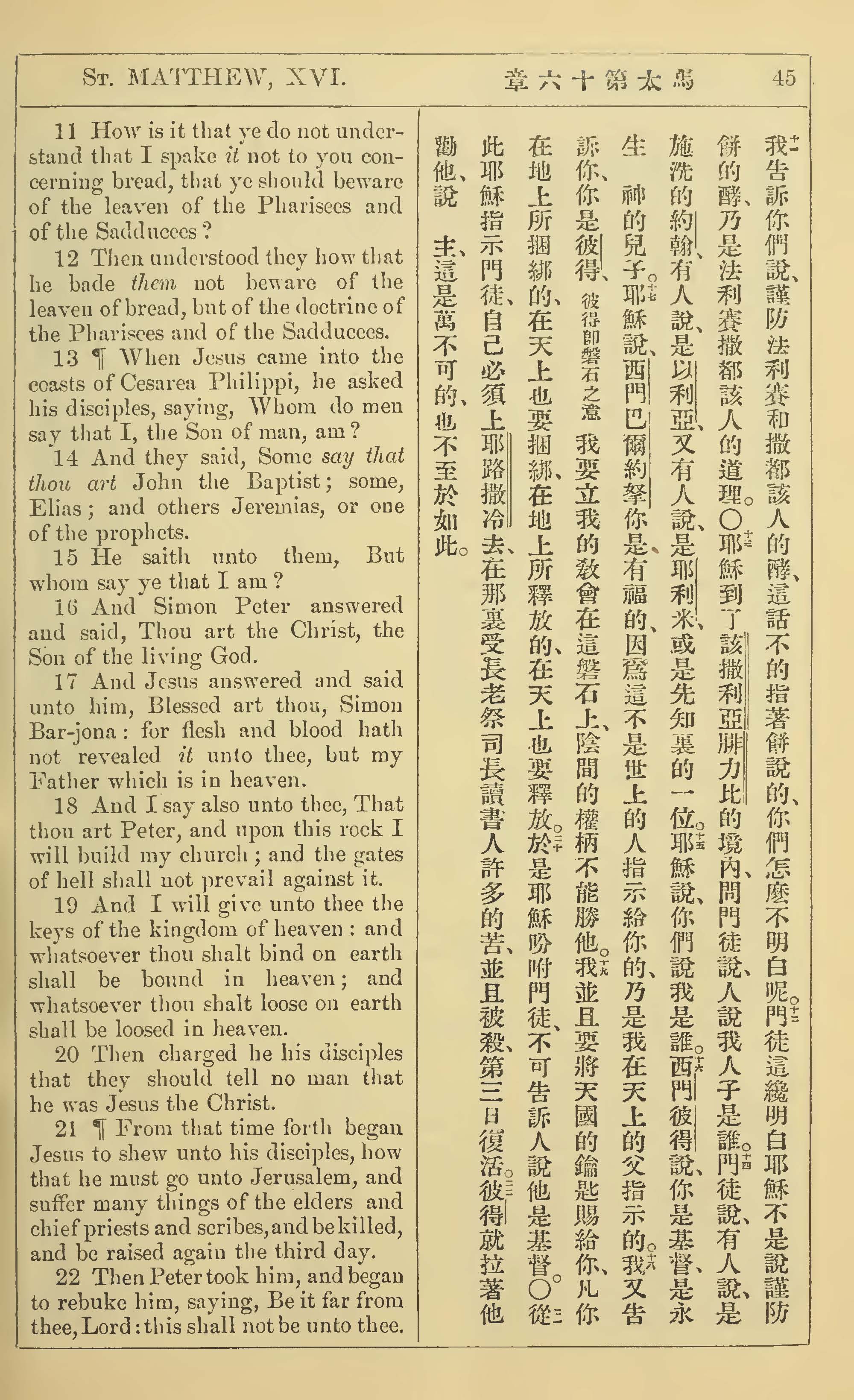 1902年新约全书(中英对照) 马太福音 16 章 11 节到 16 章 22 节
