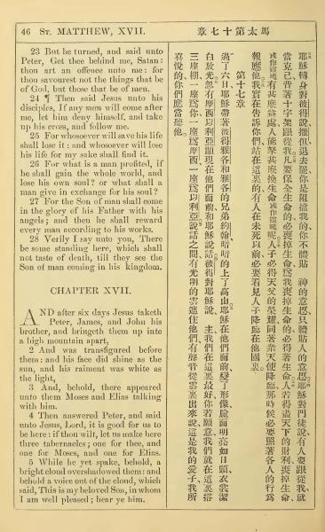 1902年新约全书(中英对照) 马太福音 16 章 23 节到 17 章 5 节