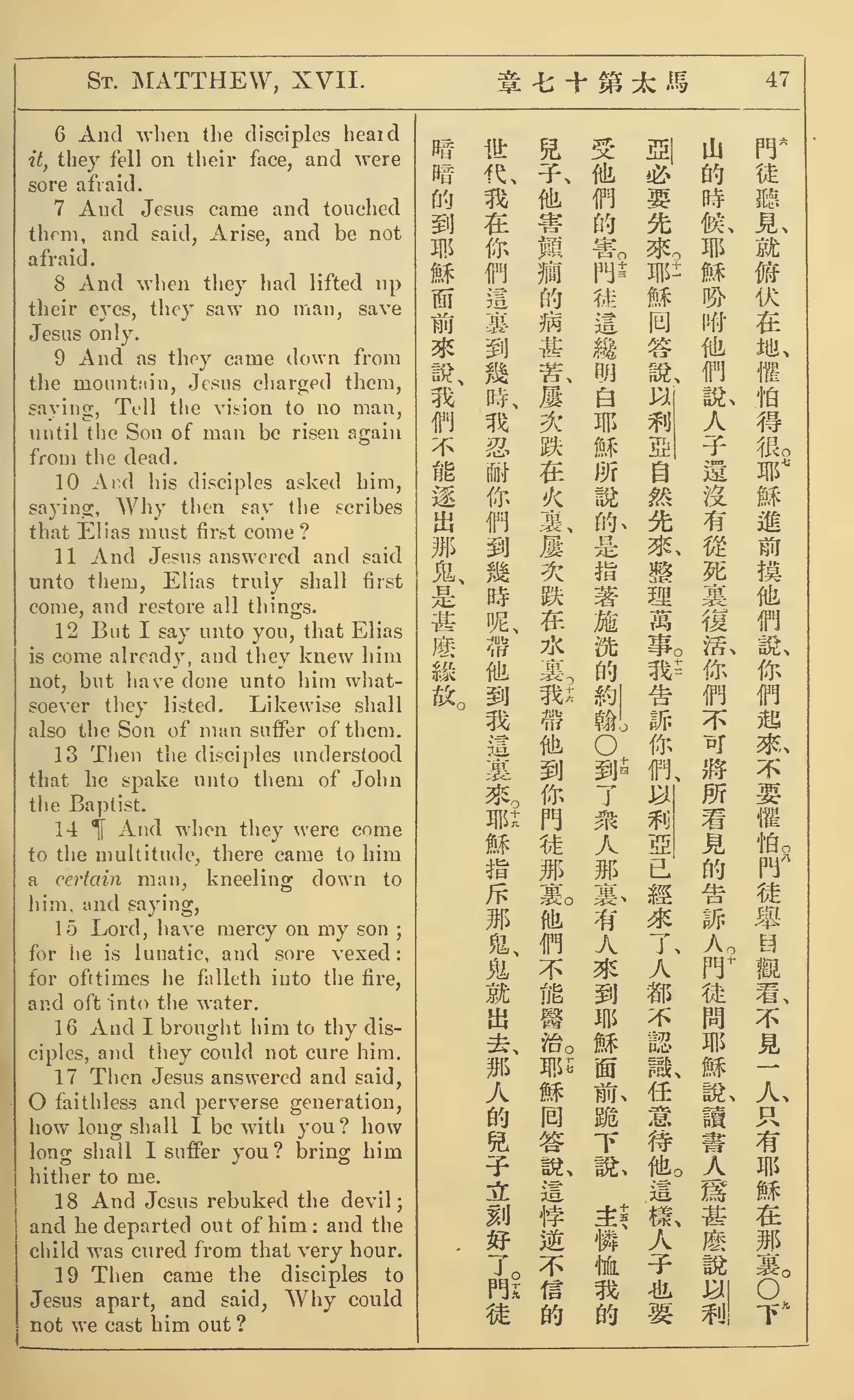 1902年新约全书(中英对照) 马太福音 17 章 6 节到 17 章 19 节