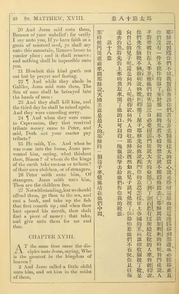 1902年新约全书(中英对照) 马太福音 18 章 20 节到 19 章 2 节