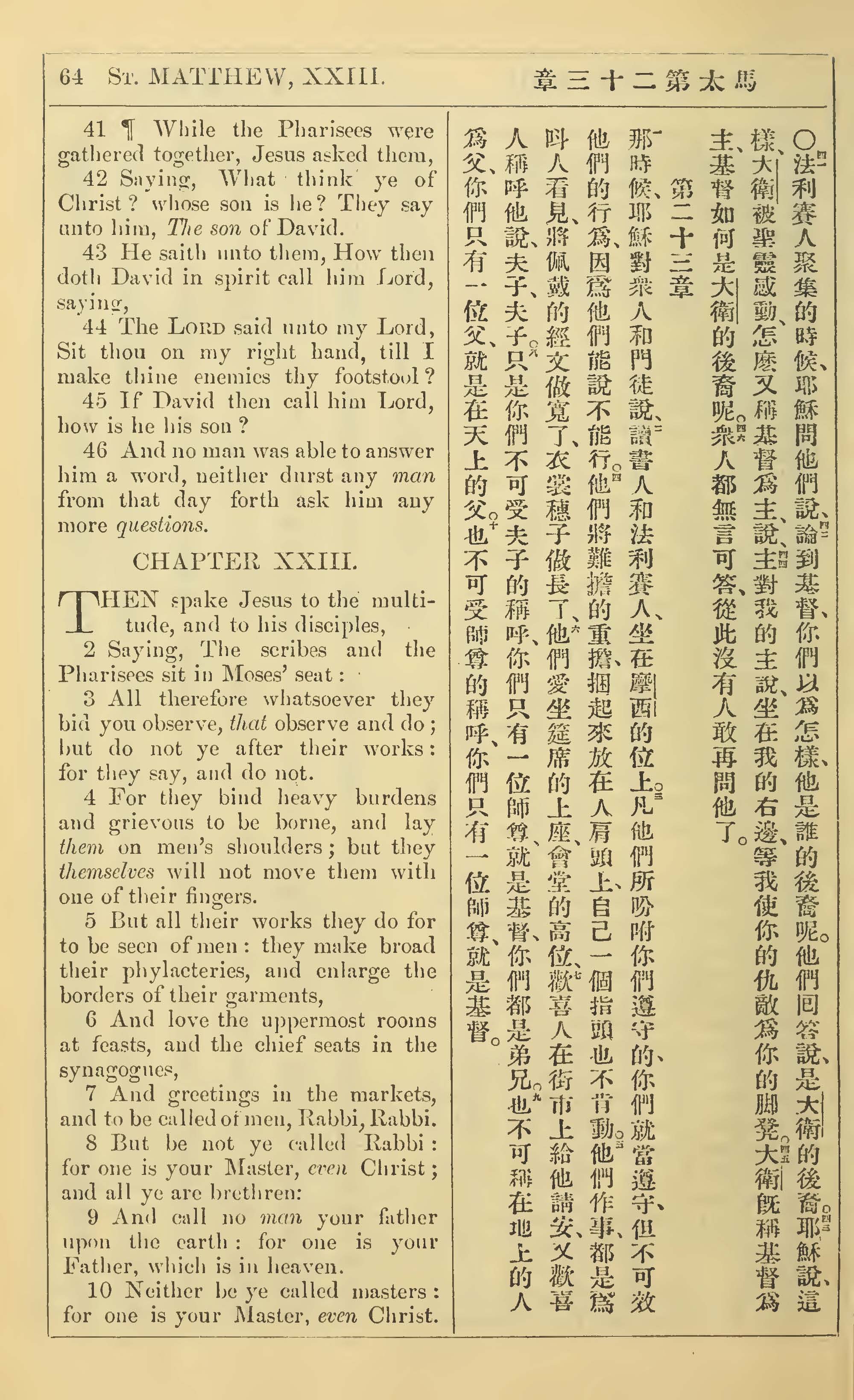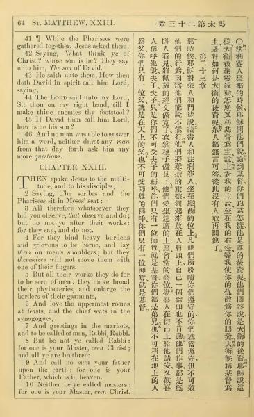 1902年新约全书(中英对照) 马太福音 22 章 41 节到 23 章 10 节