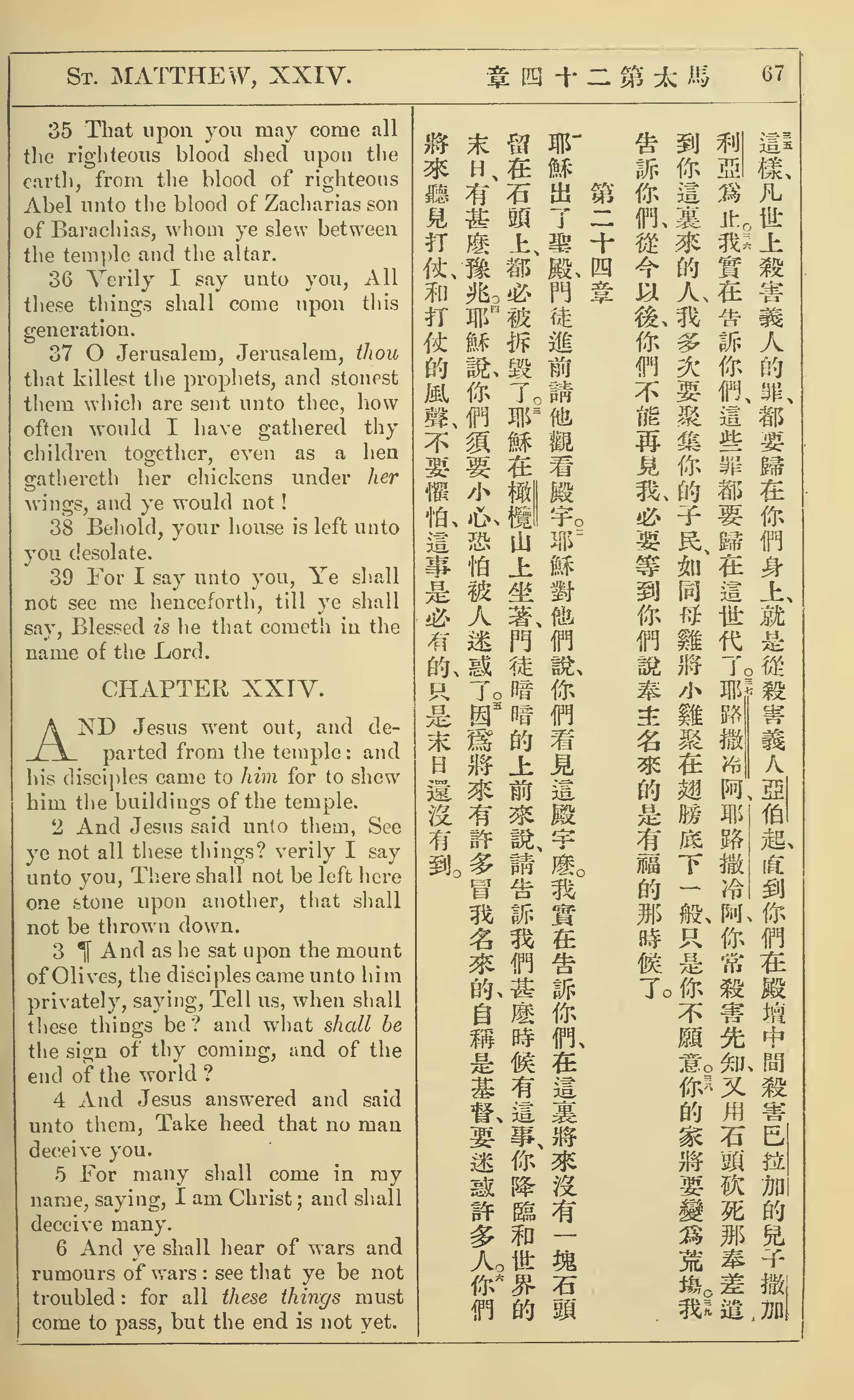 1902年新约全书(中英对照) 马太福音 23 章 35 节到 24 章 6 节