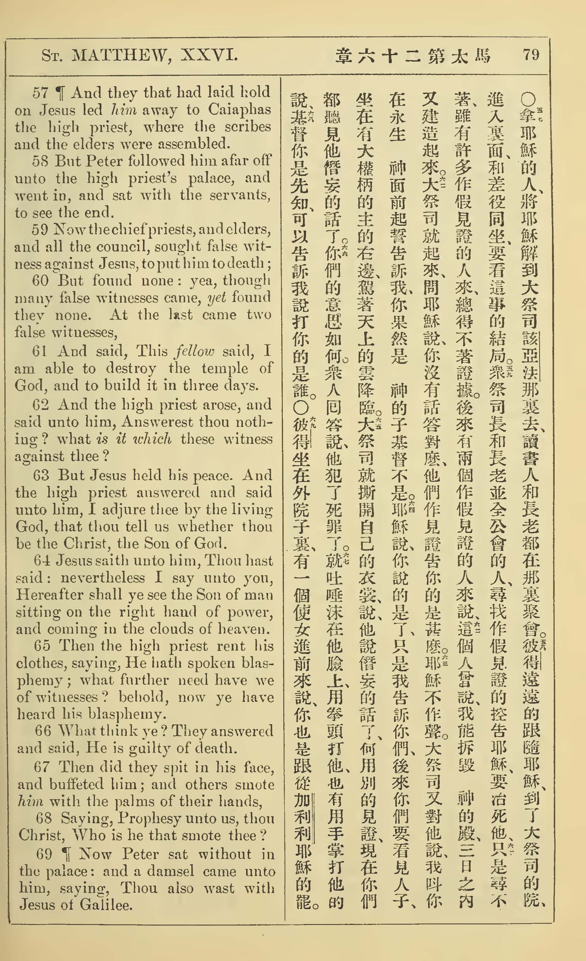 1902年新约全书(中英对照) 马太福音 26 章 57 节到 26 章 69 节