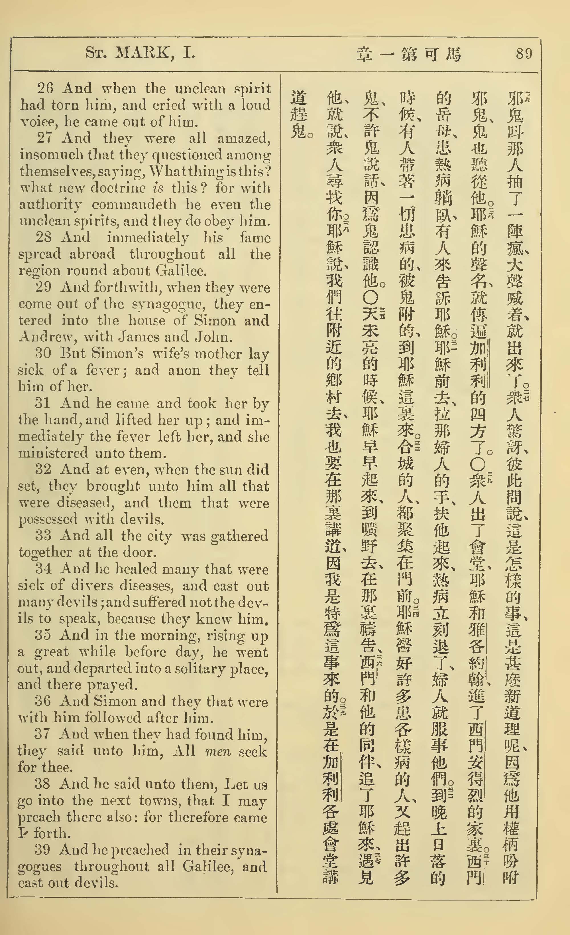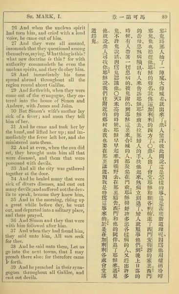 1902年新约全书(中英对照) 马可福音 1 章 26 节到 1 章 39 节
