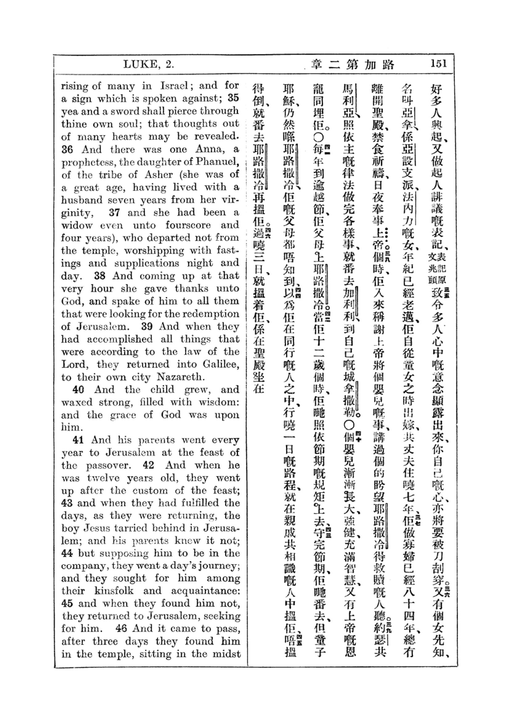 1927年新约全书(中英对照) 路加福音 2 章 34 节到 2 章 46 节