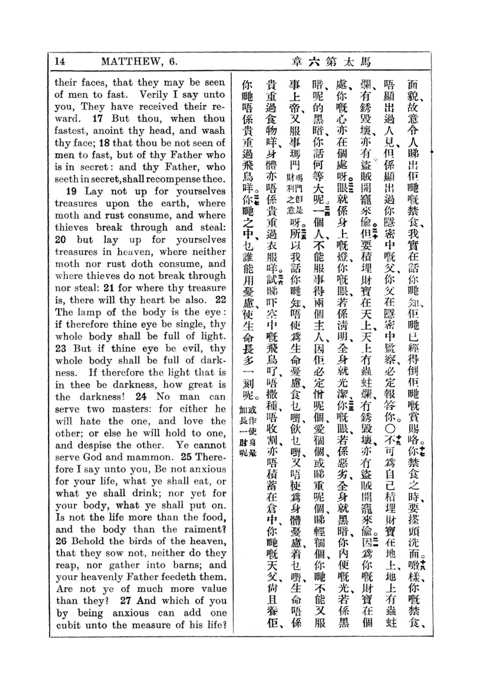 1927年新约全书(中英对照) 马太福音 6 章 17 节到 6 章 27 节