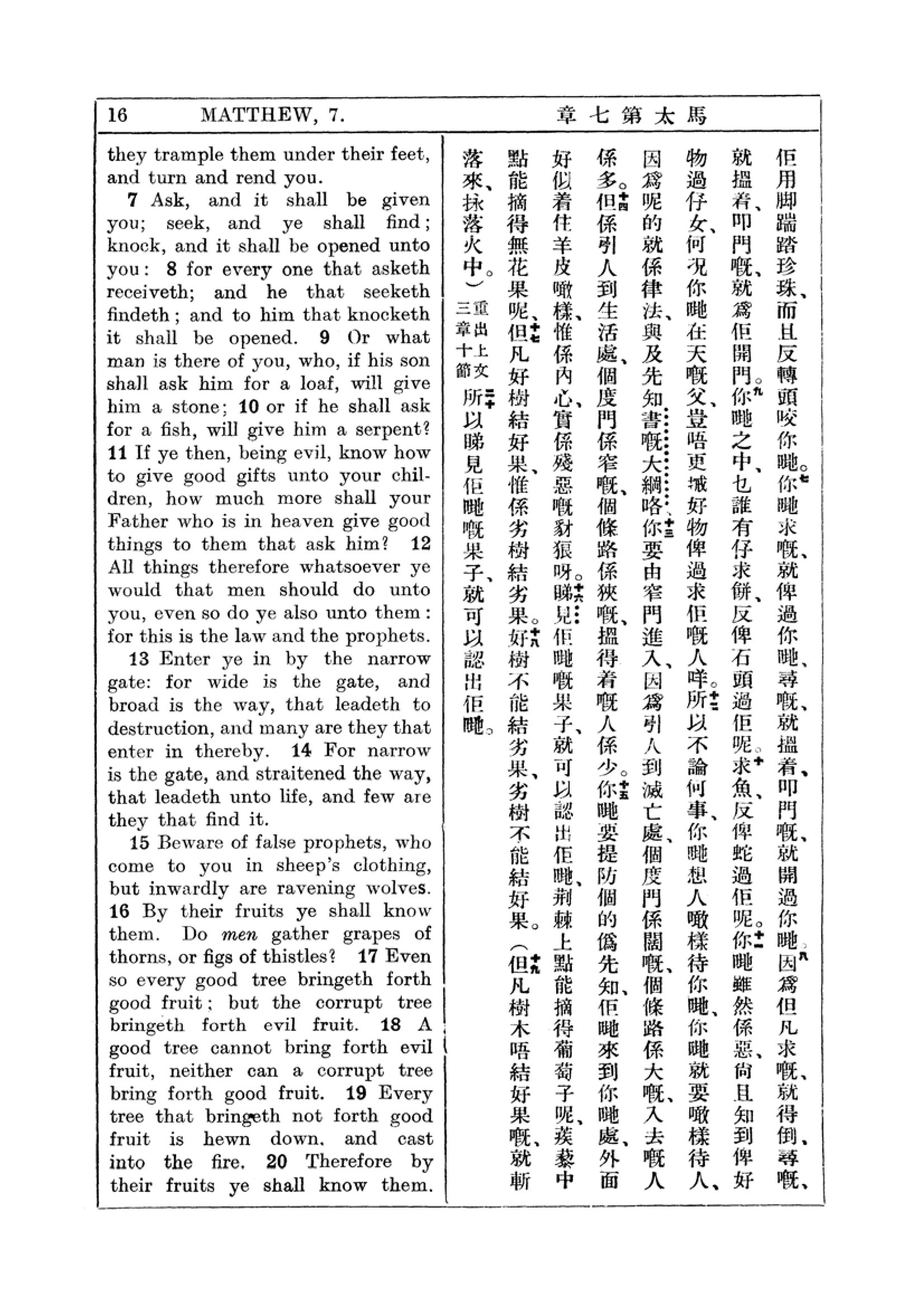 1927年新约全书(中英对照) 马太福音 7 章 7 节到 7 章 20 节