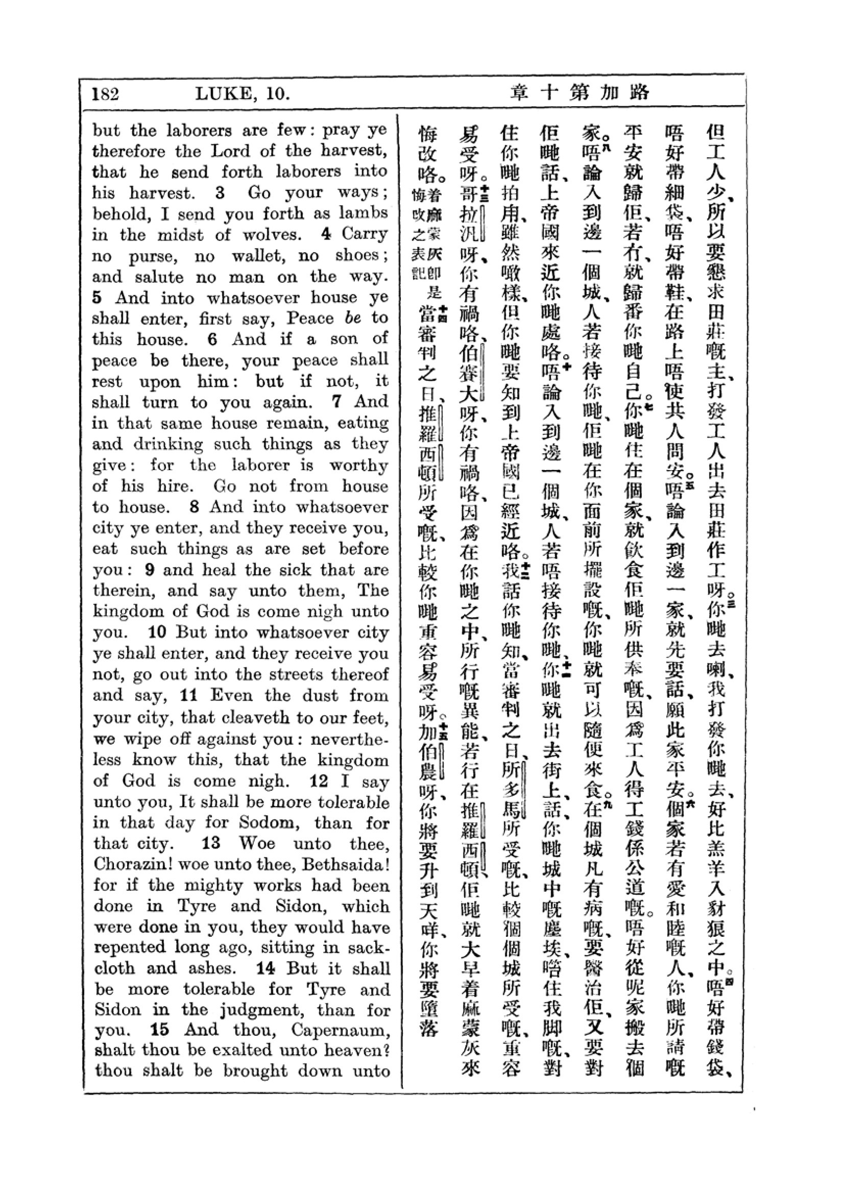 1927年新约全书(中英对照) 路加福音 10 章 3 节到 10 章 15 节