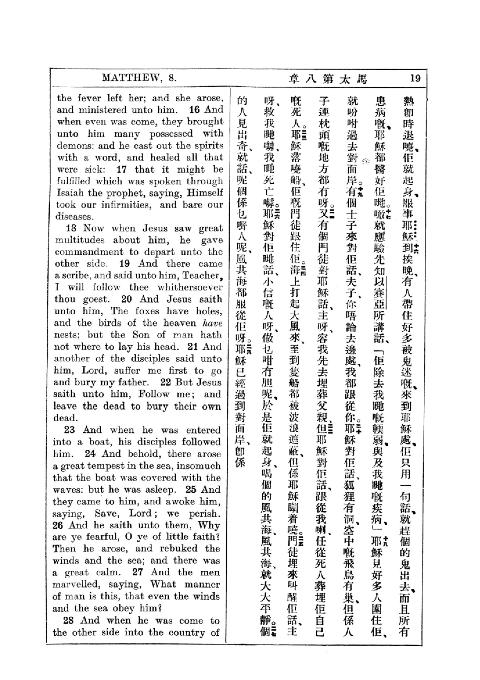 1927年新约全书(中英对照) 马太福音 8 章 16 节到 8 章 28 节