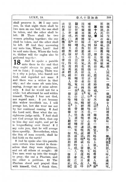 1927年新约全书(中英对照) 路加福音 17 章 34 节到 18 章 11 节