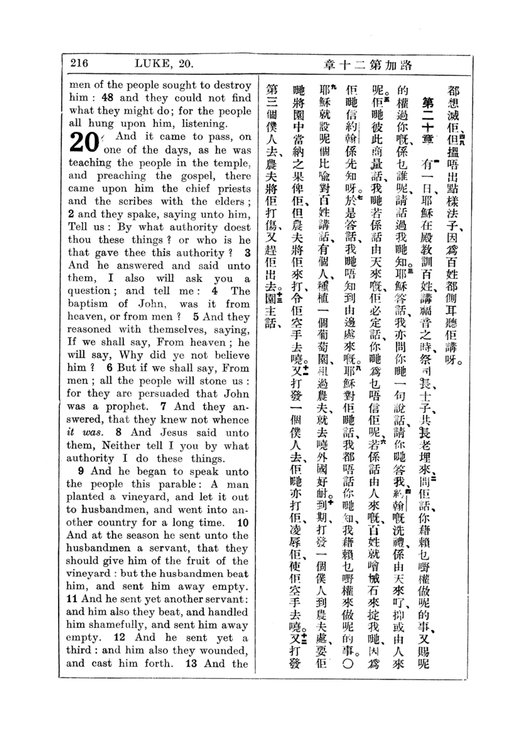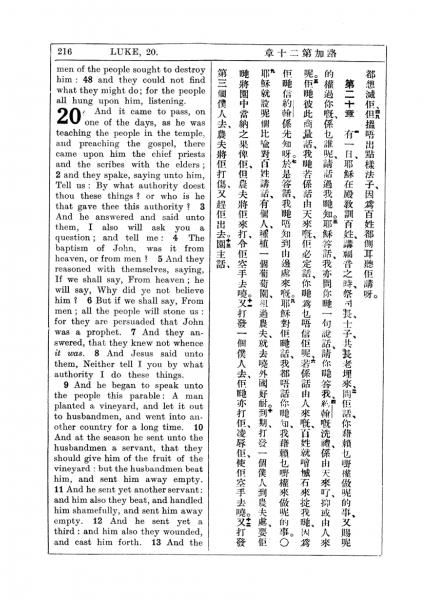 1927年新约全书(中英对照) 路加福音 19 章 48 节到 20 章 12 节