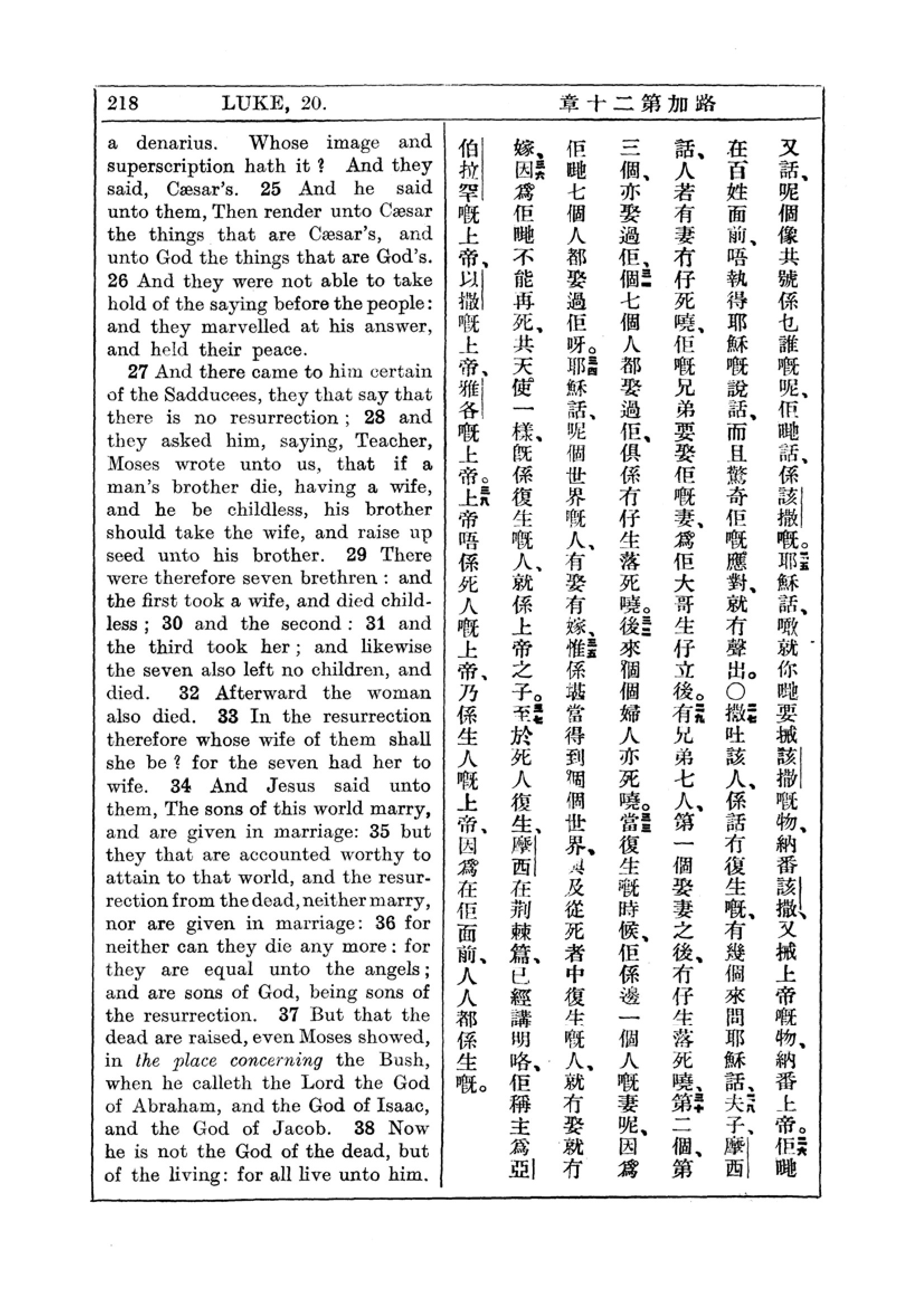 1927年新约全书(中英对照) 路加福音 20 章 24 节到 20 章 38 节