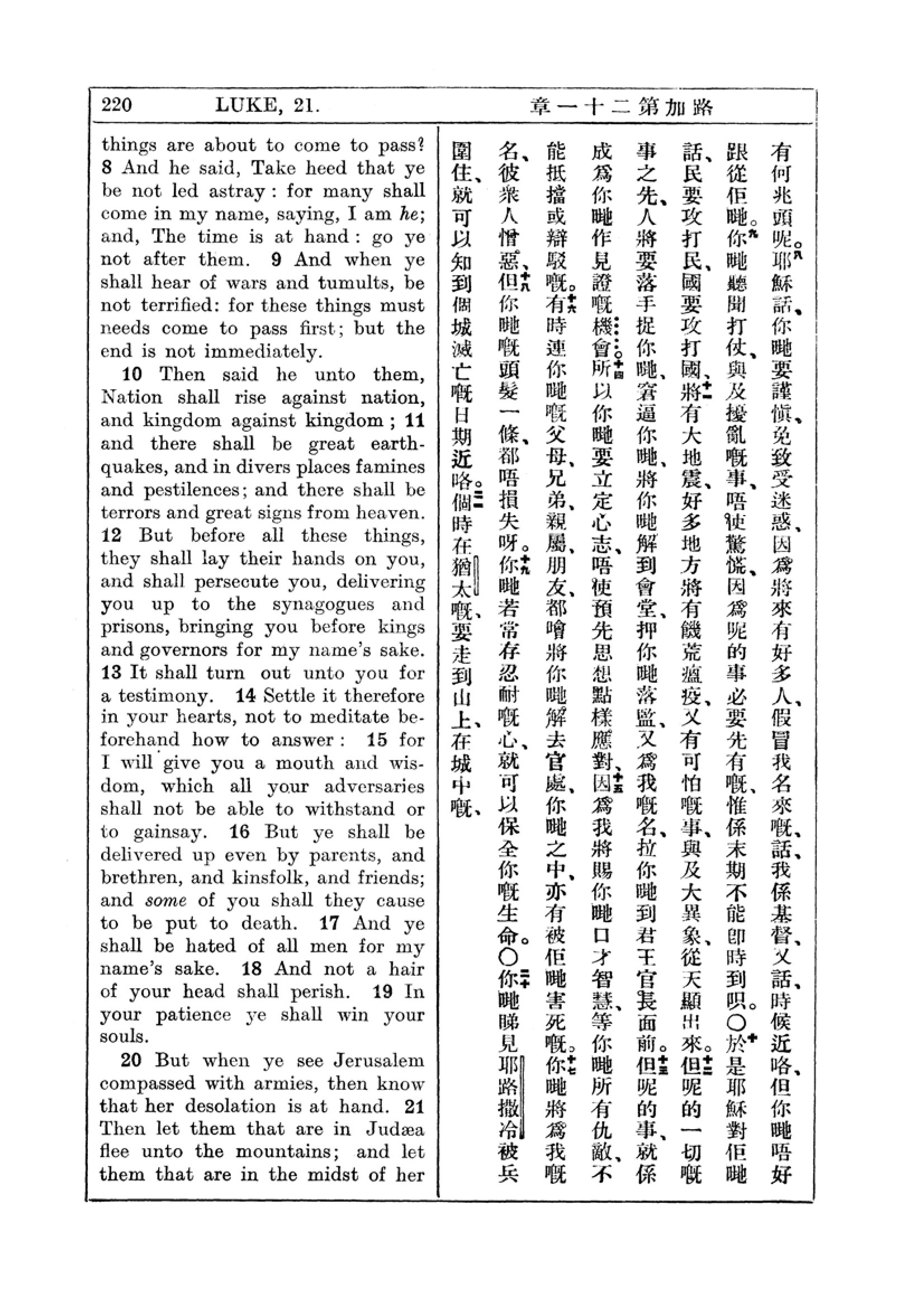 1927年新约全书(中英对照) 路加福音 21 章 8 节到 21 章 21 节