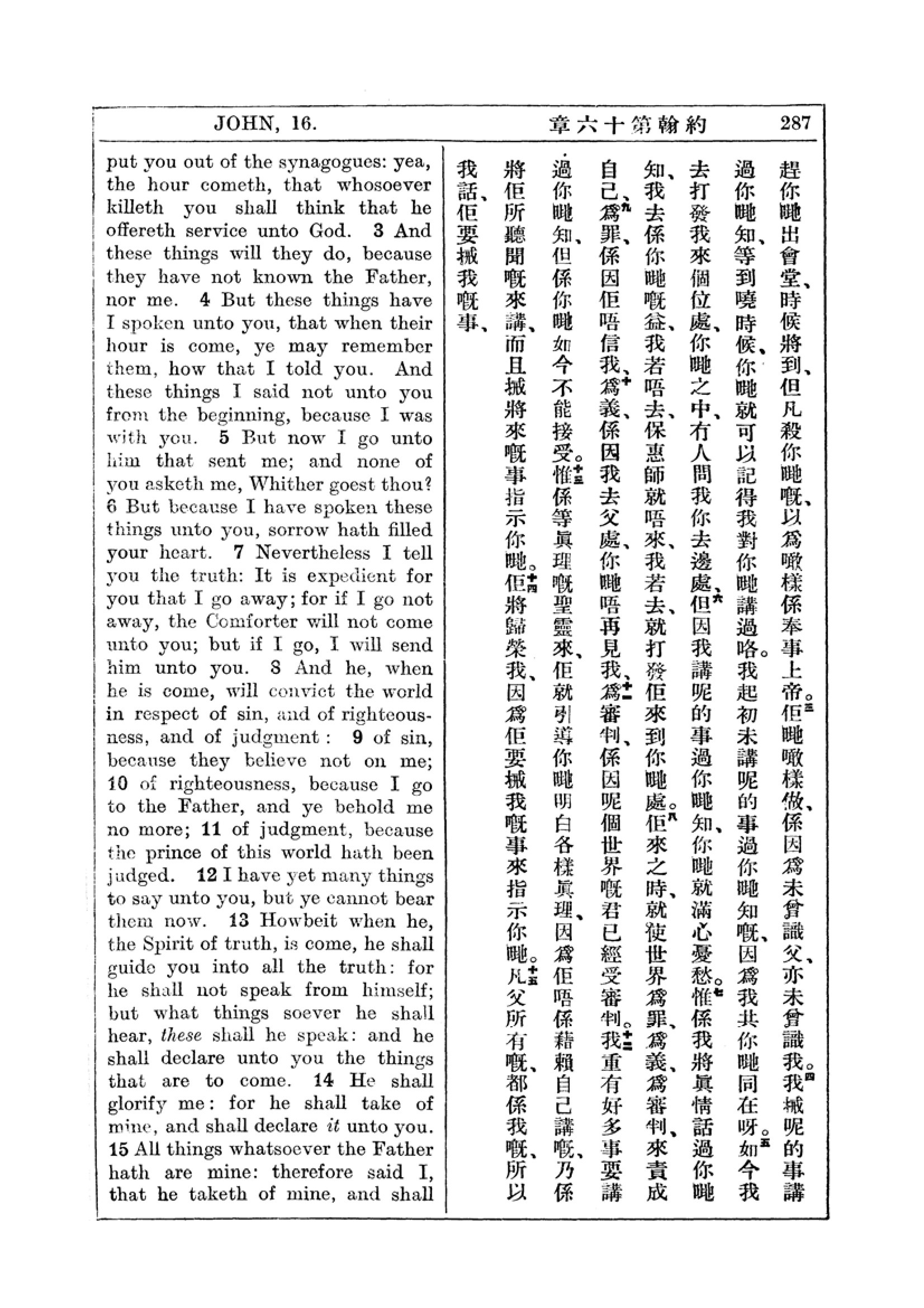 1927年新约全书(中英对照) 约翰福音 16 章 2 节到 16 章 15 节